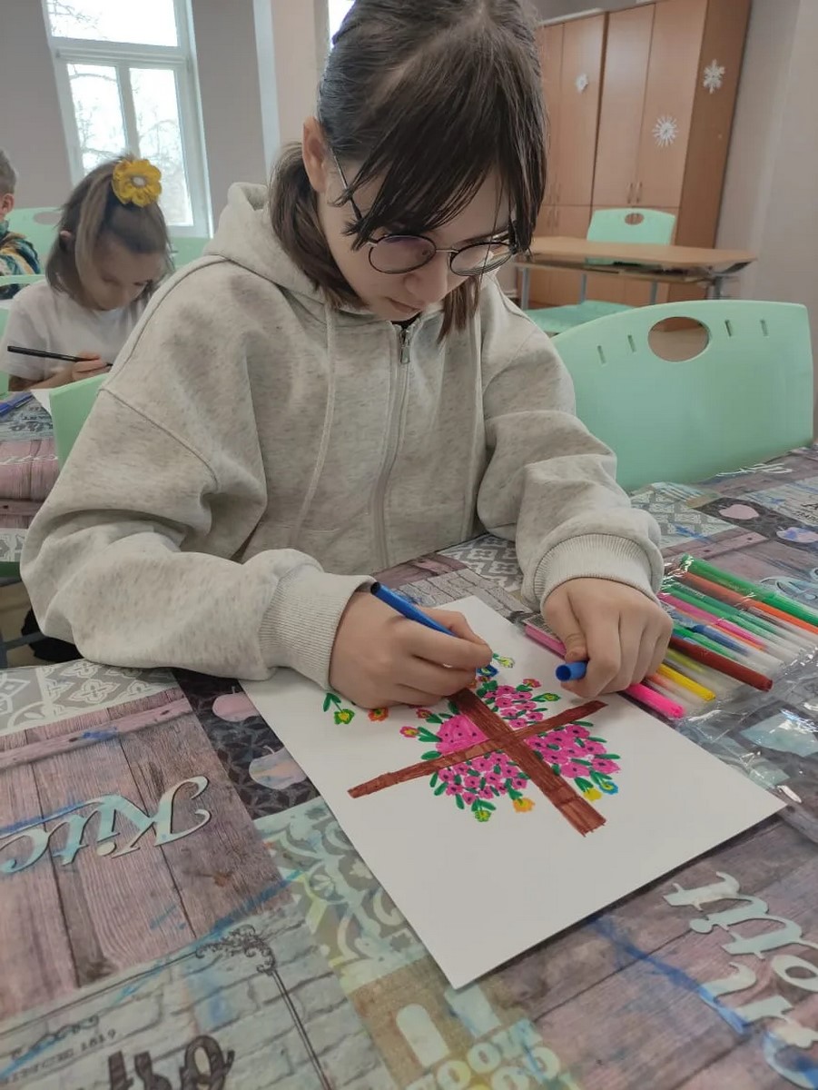 16.03.2026 Занятия в Воскресной школе на третьей неделе Великого поста, Крестопоклонная Третья неделя Великого поста — Крестопоклонная — прошла в воскресной школе при Троицком храме г. Коломна (Щурово) очень насыщенно. Центральной темой дня стала беседа об истории и глубоком значении Креста Господня. Пока младшие ребята закрепляли знания в творчестве — рисовали и украшали яркими цветами изображения Креста, — старшие погрузились в серьезные страницы истории Церкви, изучая течения Реформации в Европе XVI века. В творческой мастерской старшая группа достигла заметных успехов: ребята освоили азы вышивки и уже готовы переходить к более сложным узорам. А в музыкальном классе, как и всегда в это время, вовсю звучат радостные пасхальные мотивы. Каждое занятие — это еще один шаг к познанию традиции и развитию талантов в нашей дружной семье. ◀ ▶ x