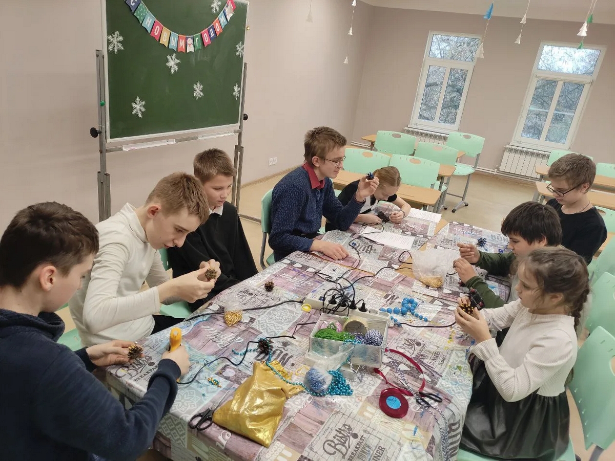 08.12.2025 Занятия в Воскресной школе - Образовательная платформа для встреч Воскресная школа при Троицком храме г. Коломна (Щурово) это не только образовательная платформа , но место где встречаются добрые друзья и единомышленники. На уроках мы вспоминали удивительных святых. Старшие ребята погрузились в жизнь Иоанна Златоуста — великого проповедника, чьи слова, полные любви к Богу и людям, греют сердца уже много веков. Его смелость и верность истине стали для ребят настоящим уроком стойкости. А младшая группа слушала историю святой Екатерины Александрийской. Они узнали не только о её необыкновенной мудрости и учёности, но и о великом подвиге веры: как юная дева, исполненная мужества, смогла вступить в диспут с учёными философами и обратить их ко Христу, и как осталась непоколебимой, избрав верность Ему даже перед лицом страданий. В творческой мастерской царила особая, сосредоточенная атмосфера. Сначала самые младшие наши ученики создавали уютную зимнюю картину — пушистую сову на ветке в инее, будто подглядев сценку из спящего зимнего леса. А позже за столы сели старшие ребята. Их работа требовала терпения и тонких движений: они превращали простые сосновые шишки в нарядные ёлочные украшения, аккуратно нанизывая сверкающий бисер. Каждая такая поделка — не просто игрушка, а маленькое душевное тепло, которое вскоре озарит домашнюю ёлочку. ◀ ▶ x