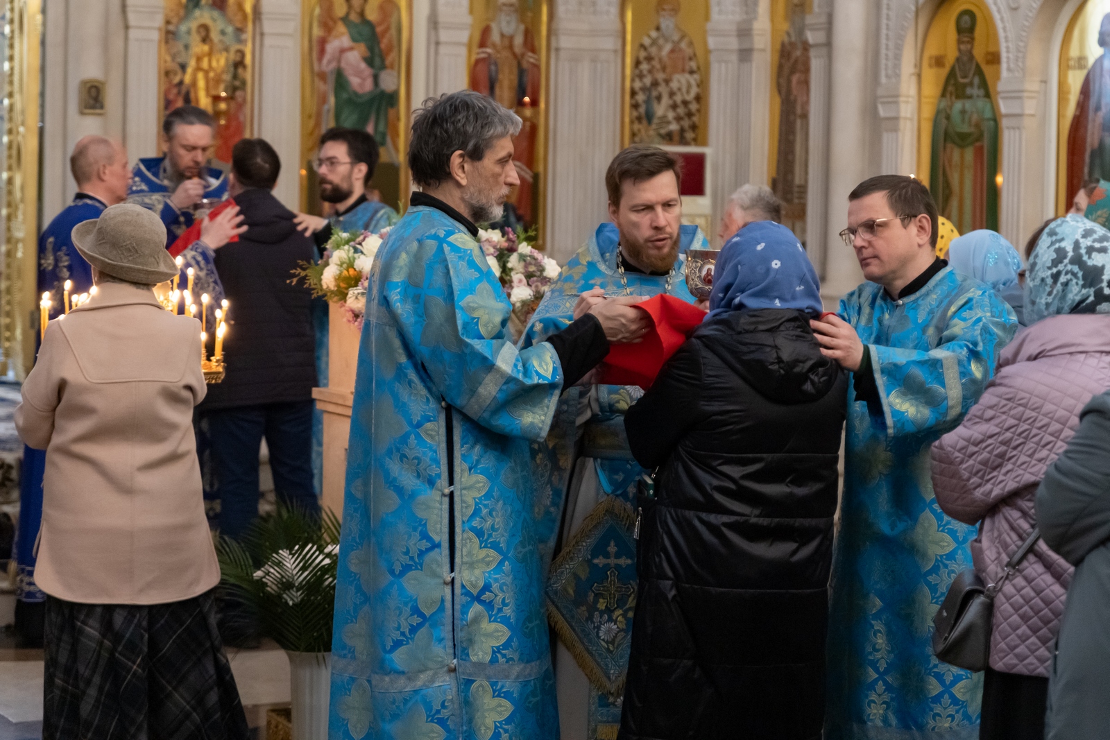 07.04.2026 Благовещение Пресвятой Богородицы Колокольный звон и полет белых голубей – праздник Благовещения Пресвятой Богородицы встретили на приходе Троицкого храма г. Коломна (Щурово). Богослужение в этот день совершил настоятель храма протоиерей Алексий Виноградов в сослужении клириков храма: протоиерея Димитрия Киреева, иерея Николая Глухова, иерея Павла Чеснокова и протодиакона Димитрия Соловьева. Богослужебные песнопения исполнил клиросный хор храма под управлением Софьи Андреевны Германовой. За богослужением молились прихожане, сотрудники храма, воспитанники детского социального центра и подопечные социального центра «Надежда» при Троицком храме. В этот день, седьмого апреля, Церковь вспоминает чудесное явление архангела Гавриила, возвестившего Пресвятой Деве Марии благую весть, ибо ей предстояло стать Матерью грядущего в мир Мессии – Спасителя. Архангел, обращаясь к Богородице, возвестил: «Радуйся, Благодатная! Господь с Тобою!» Она же, услышав такое приветствие, смутилась от слов его и размышляла, что бы это означало. «И сказал Ей Ангел: не бойся, Мария, ибо Ты обрела благодать у Бога; и вот, зачнешь во чреве, и родишь Сына, и наречешь Ему имя: Иисус. Он будет велик и наречется Сыном Всевышнего». Праздник Благовещения на Руси всегда был особым, одним из самых любимых: он знаменовал не только благую весть и ожидание чуда воплощения в человеке Господа Иисуса Христа, но и скорый приход Пасхи, весну, радость, надежду. И, конечно, он всегда был особенно любим детьми за традицию выпускать голубей. Так и сегодня наши самые юные прихожане со своими родителями пришли на богослужение, чтобы затем увидеть, как белые птицы взмывают ввысь, уносясь к небу. Дорогие братья и сестры, поздравляем с великим двунадесятым праздником Благовещения Пресвятой Богородицы! Желаем всем вам благих вестей и духовной тихой радости в сердце! ◀ ▶ x