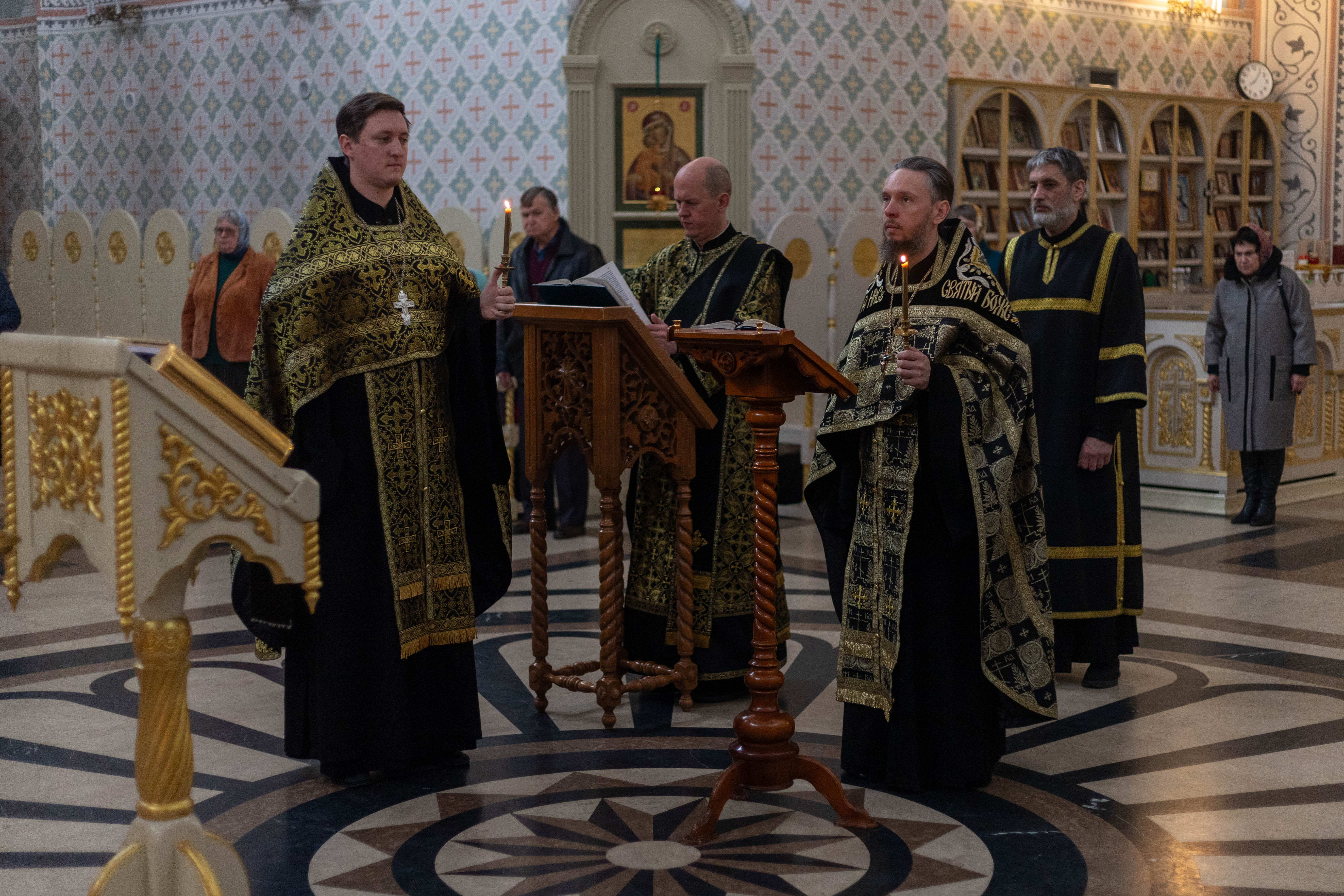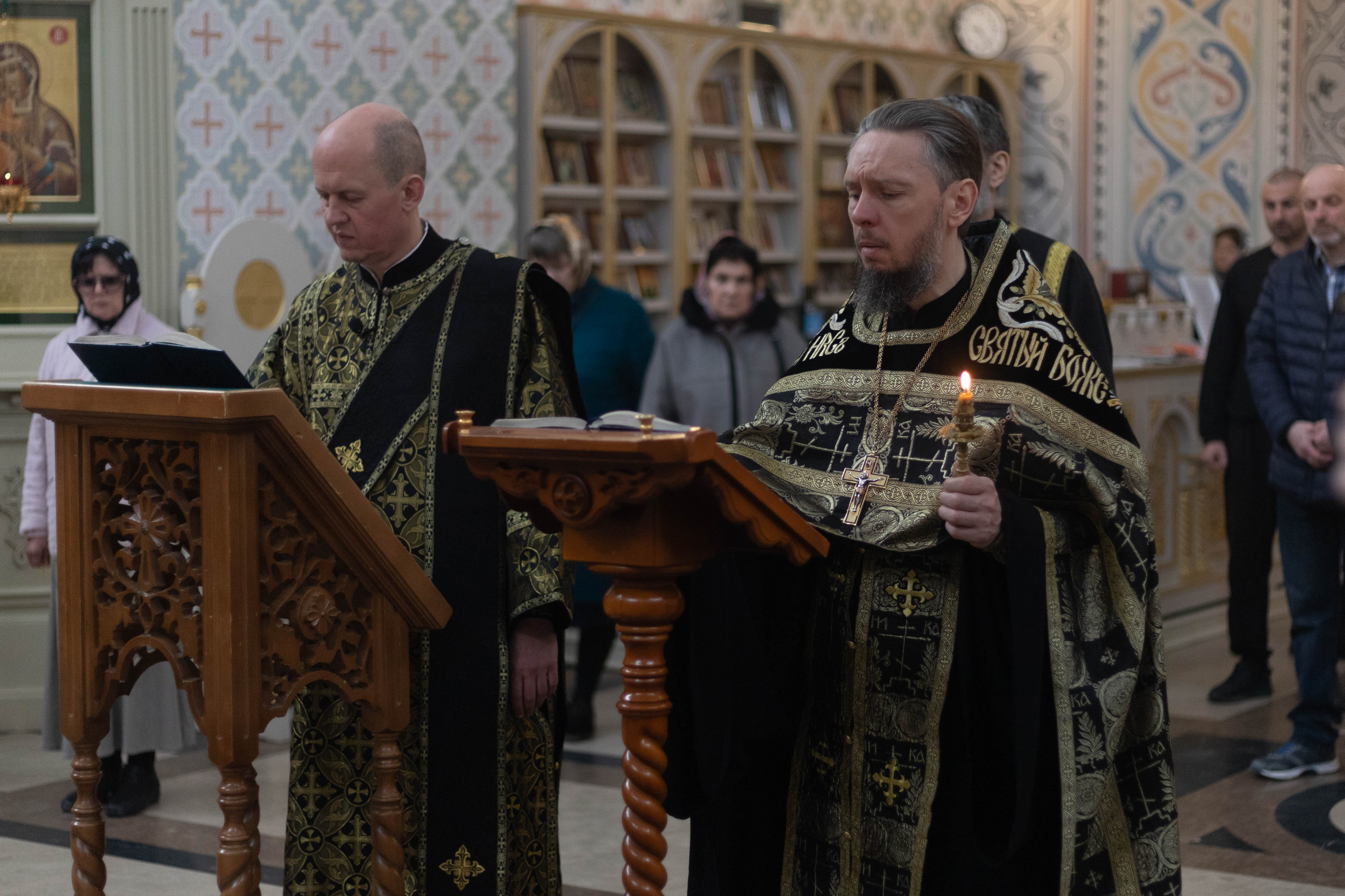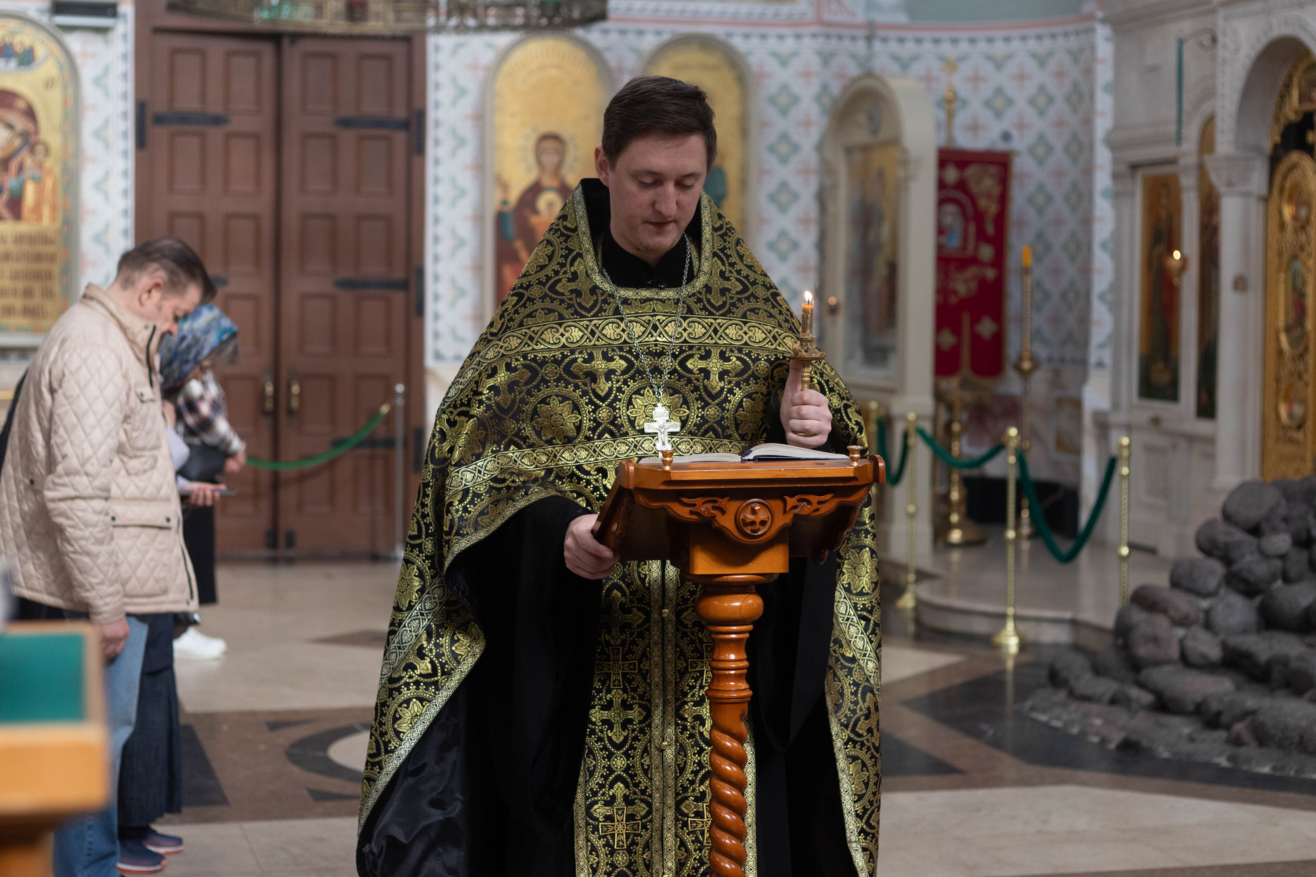18.04.2025 Богослужение Великой Пятницы с воспоминанием Святых спасительных Страстей Господа нашего Иисуса Христа 18 апреля в Троицком храме г. Коломна (Щурово) состоялось богослужение Великой Пятницы, которое возглавил настоятель храма протоиерей Алексий Виноградов в сослужении клириков храма: протоиерея Димитрия Киреева, иерея Николая Глухова и протодиакона Димитрия Соловьева. Богослужебные песнопения исполнил клиросный хор Троицкого храма г. Коломна (Щурово) под управлением Софьи Андреевны Германовой. Совершались Царские Часы, Изобразительны, Вечерня Великого Пятка и Вынос Плащаницы. Великая Пятница – день Страданий и Крестной Смерти Господа Иисуса Христа. На читавшихся Царских Часах, каждому часу было положено свое Апостольское и Евангельское чтение: молящиеся снова переживают историю неправедного суда над Христом. В завершении богослужения совершился Вынос Плащаницы: собравшиеся в храме оплакали Почившего Христа и смогли воздать Ему целование. Сегодня же, на Утрене, будет совершаться Чин Погребения Плащаницы. "Вся тварь изменяшеся страхом, зрящи Тя на Кресте висима, Христе: солнце омрачашеся, и земли основания сотрясахуся, вся сострадаху Создавшему вся. Волею нас ради претерпевый Господи, слава Тебе". ◀ ▶ x