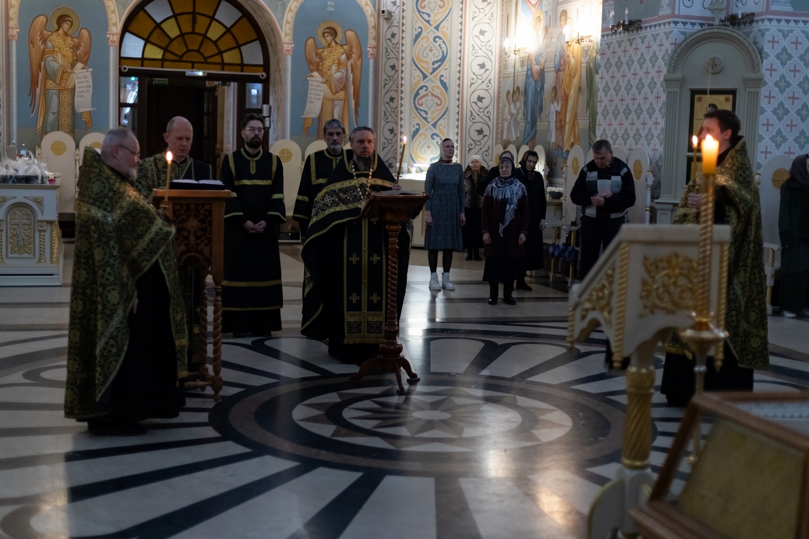 10.04.2026 Богослужение Великой Пятницы с Выносом Плащаницы 10 апреля в Троицком храме г. Коломна (Щурово) состоялось богослужение Великой Пятницы, которое возглавил настоятель храма протоиерей Алексий Виноградов в сослужении клириков храма: протоиерея Димитрия Киреева, иерея Николая Глухова, иерея Павла Чеснокова и протодиакона Димитрия Соловьева. Богослужебные песнопения исполнил клиросный хор Троицкого храма г. Коломна (Щурово) под управлением Софьи Андреевны Германовой. Совершались Царские Часы, Изобразительны, Вечерня Великого Пятка и Вынос Плащаницы. Великая Пятница – день Страданий и Крестной Смерти Господа Иисуса Христа. На читавшихся Царских Часах, каждому часу было положено свое Апостольское и Евангельское чтение: молящиеся снова переживают историю неправедного суда над Христом. В завершении богослужения совершился Вынос Плащаницы. Сегодня же, на Утрене, будет совершаться Чин Погребения Плащаницы. "Вся тварь изменяшеся страхом, зрящи Тя на Кресте висима, Христе: солнце омрачашеся, и земли основания сотрясахуся, вся сострадаху Создавшему вся. Волею нас ради претерпевый Господи, слава Тебе". ◀ ▶ x