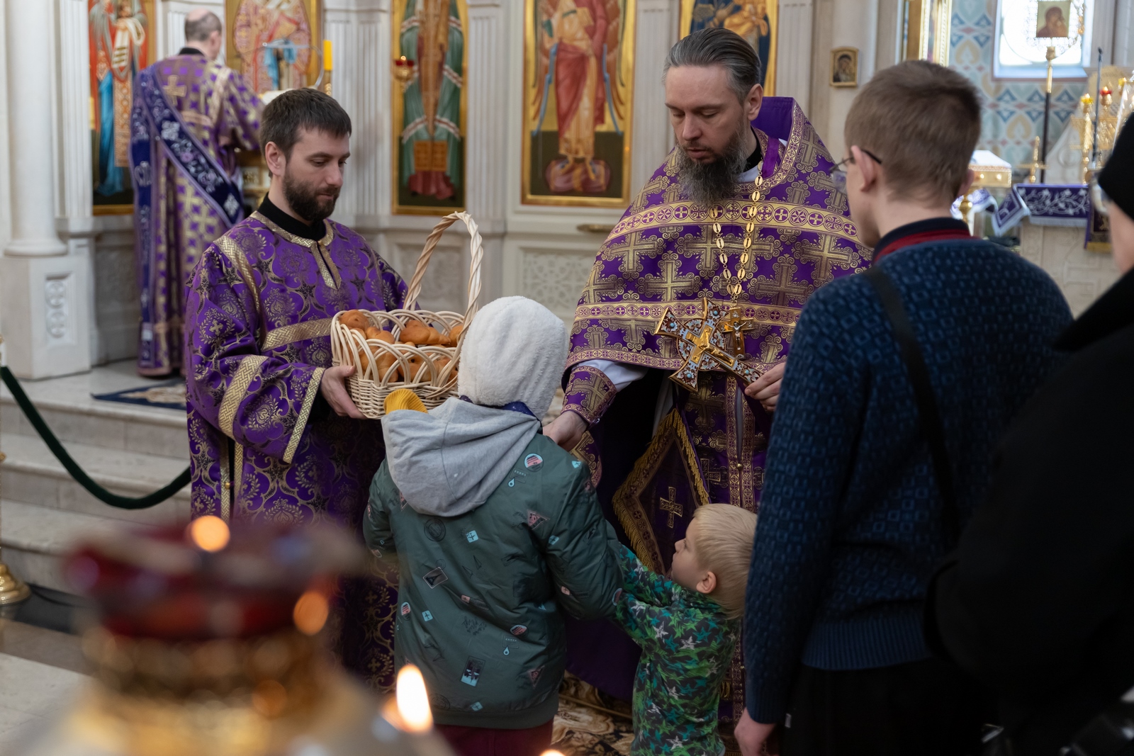 22.03.2026 Божественная литургия 22 марта, в Неделю 4-ю Великого поста, в день памяти 40 Севастийских мучеников 22 марта, в Неделю 4-ю Великого поста, в день памяти 40 Севастийских мучеников, в Троицком храме г. Коломна (Щурово) было совершено воскресное Богослужение. Литургию возглавил настоятель храма протоиерей Алексий Виноградов в сослужении клириков храма. За богослужением молились прихожане, сотрудники Троицкого храма, воспитанники детского социального центра и подопечные социального центра «Надежда» при Троицком храме. Богослужебные песнопения исполнил клиросный хор Троицкого храма г. Коломна (Щурово) под управлением Софьи Андреевны Германовой. 40 мучеников Севастийских пострадали около 315 г. в армянском городе Севастии, где пребывала дружина из сорока Каппадокийцев, мужественных воинов. Все они были христиане, а их военачальник Агриколай – язычник. Узнав, что его воины – христиане, он заключил их в темницу, где они молились и сподобились услышать: «Претерпевый до конца спасется». Агриколай и прибывший в город сановник Лисий устроили суд над воинами и повелели побить их камнями. Камни же летели мимо святых воинов, и тогда мучители поняли, что их охраняет какая-то сила. Тогда святых раздели и повели в мороз к озеру, а на берегу приказали растопить баню. В полночь один из мучеников упал духом и бросился из озера в баню, но, едва переступив порог, упал замертво. В третьем часу ночи, один из стражников по имени Аглаий, увидел над главами мучеников 39 сияющих венцов. Он понял, что воин, который убежал в баню, лишился венца. Тогда Аглаий исповедовал себя христианином и, сбросив одежды, присоединился к мученикам в озере. Он молился: «Господи Боже, я верую в Тебя, в Которого эти воины веруют. Присоедини меня к ним, да сподоблюсь пострадать с Твоими рабами». Наутро мучители узнали, что мученики еще живы и повелели перебить им голени и сжечь на костре, а честные мощи бросить в воду, чтобы христиане не взяли их. Через три дня после казни мученики явились во сне епископу Севастийскому Петру и повелели взять их мощи. Епископ и несколько клириков ночью собрали святые мощи и с честью погребли их. Святым мученикам Севастийским молятся о даровании мужества и стойкости, о терпении в скорбях. Память 40 мучеников всегда выпадает на Великий Пост. Их подвиг побуждает мужественно исполнять сорокадневный Великий Пост. По окончании Литургии состоялось раздача "жаворонков" - сделанных из теста птичек. Такие жаворонки изображают собой песнь славы Господу, вознесенную мучениками, их смирение и устремленность ввысь, в Царство Небесное, к Господу Иисусу Христу. ◀ ▶ x