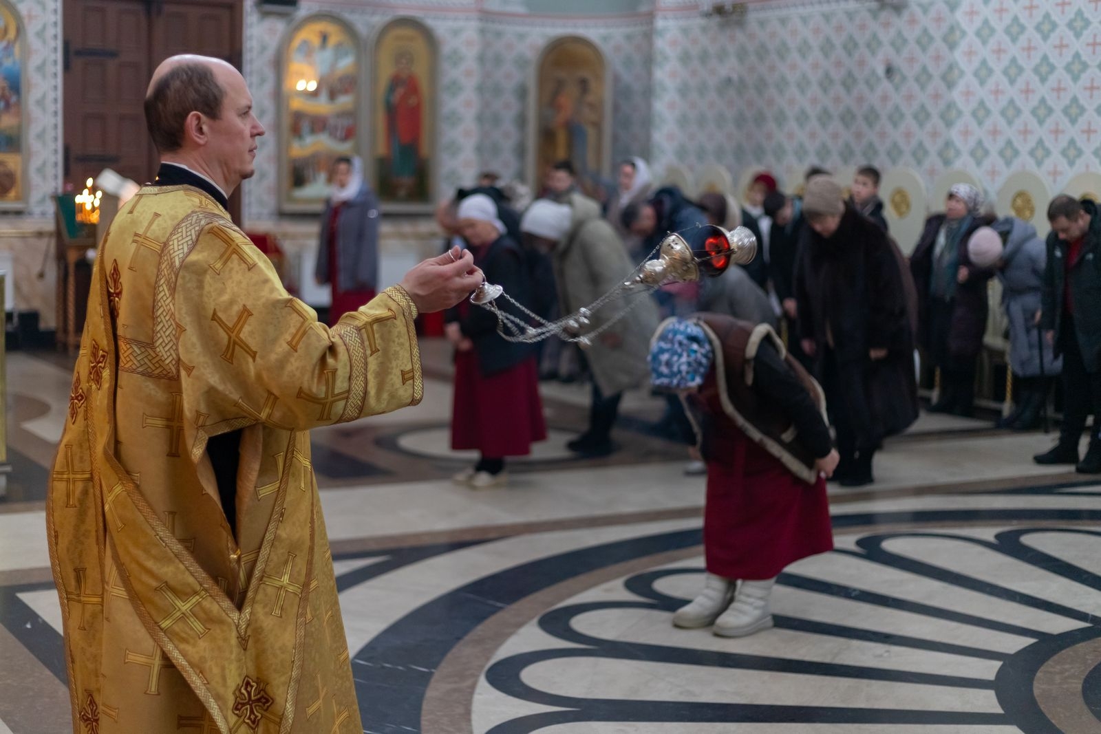 22.02.2026 Божественная литургия с чином прощения Все желающие пожать плоды от своего покаяния, услышьте Слово Божие, услышьте завет Божий: простите ближним согрешения их пред вами". Святитель Игнатий (Брянчанинов). Прощеное воскресенье – последний день перед Великим постом. В этот день все православные христиане просят друг у друга прощения, чтобы приступить к посту с доброй душой, сосредоточиться на духовной жизни, с чистым сердцем встретить Пасху - день Воскресения Христова. Вечером, в Неделю сыропустную (Прощеное воскресенье), в Троицком храме г. Коломна (Щурово) была совершена Великая вечерня с чином прощения. После входа с кадилом и пения Великого прокимна, духовенство переоблачилось в темные одежды, а песнопения стали исполняться великопостным чином. После отпуста вечерни настоятель храма протоиерей Алексий Виноградов прочитал молитвы на начало Великого поста и обратился к прихожанам со словом о прощении ближних. Затем был совершен чин прощения, после которого отец Алексий благословил верующих на прохождение Великого поста. ◀ ▶ x