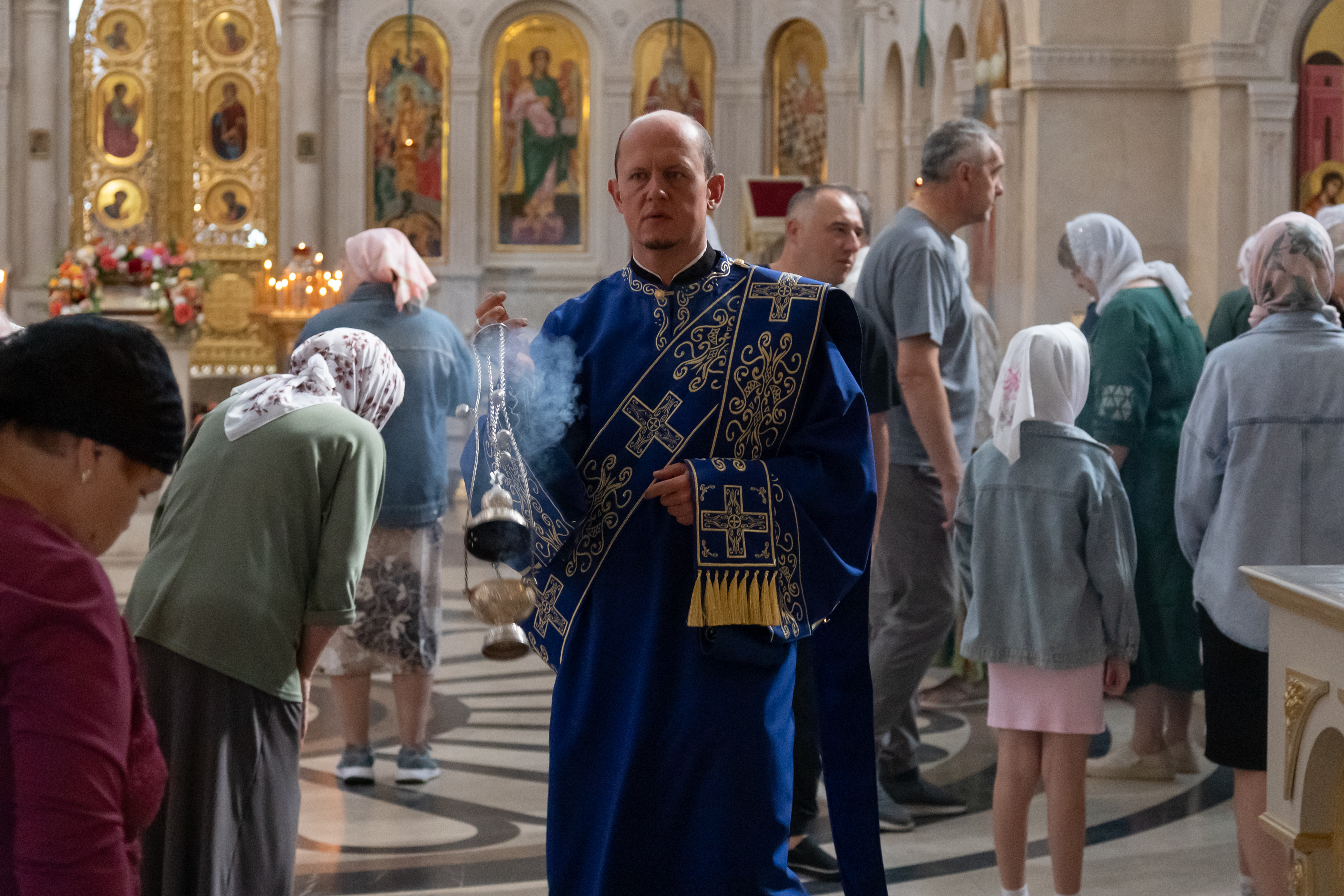 31.08.2025 Божественная Литургия в воскресенье, на неделе двенадцатой по Пятидесятнице 31 августа, в Неделю 12-ю по Пятидесятнице, в Троицком храме г. Коломна (Щурово) было совершено воскресное Богослужение. Литургию возглавил настоятель храма протоиерей Алексий Виноградов в сослужении клириков храма: протоиерея Димитрия Киреева, иерея Николая Глухова и протодиакона Димитрия Соловьева. За богослужением молились прихожане, сотрудники Троицкого храма, воспитанники детского социального центра и подопечные социального центра «Надежда» при Троицком храме. Богослужебные песнопения исполнил клиросный хор Троицкого храма г. Коломна (Щурово) под управлением Софьи Андреевны Германовой. По окончании Богослужения был совершен молебен перед началом учебного года. ◀ ▶ x