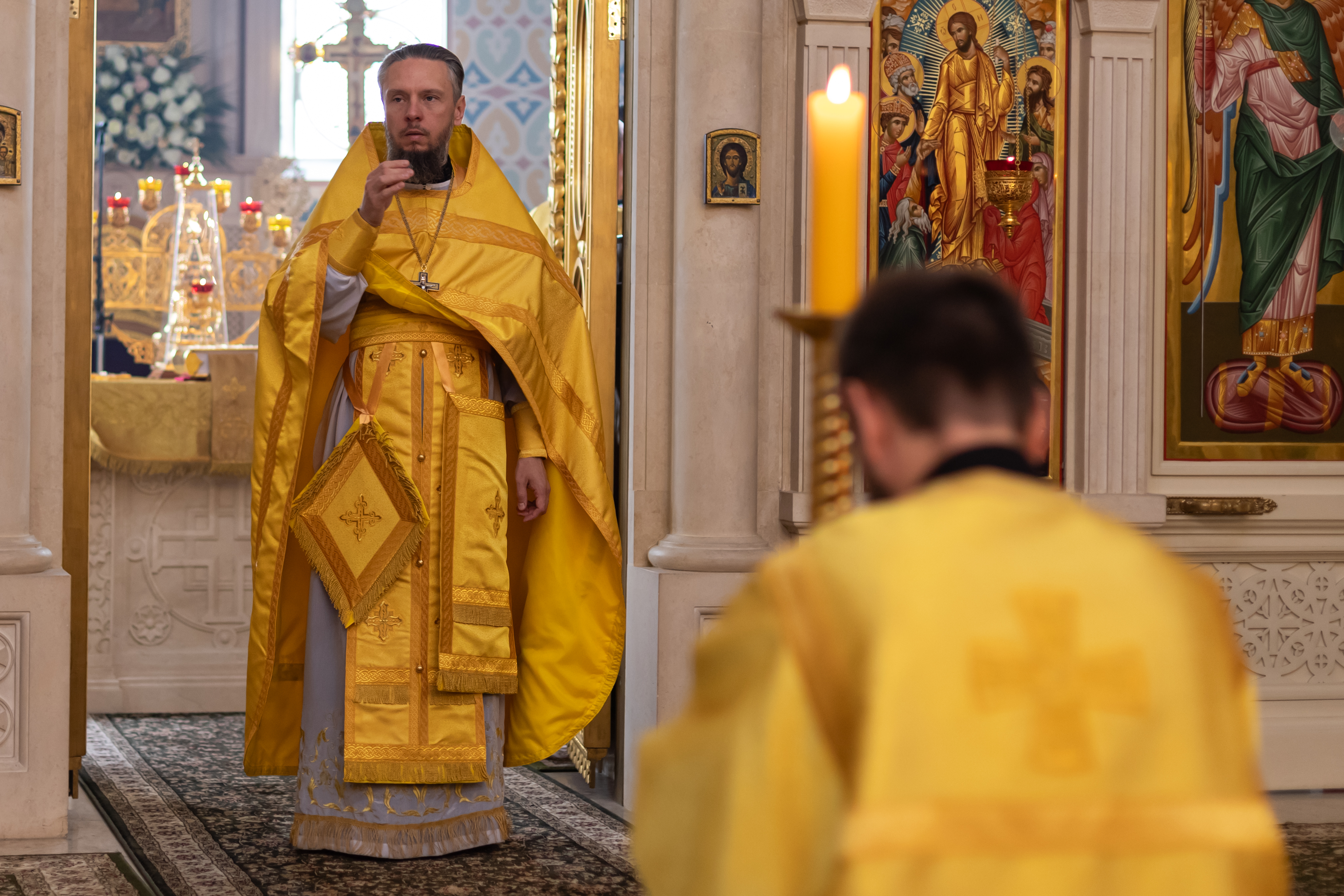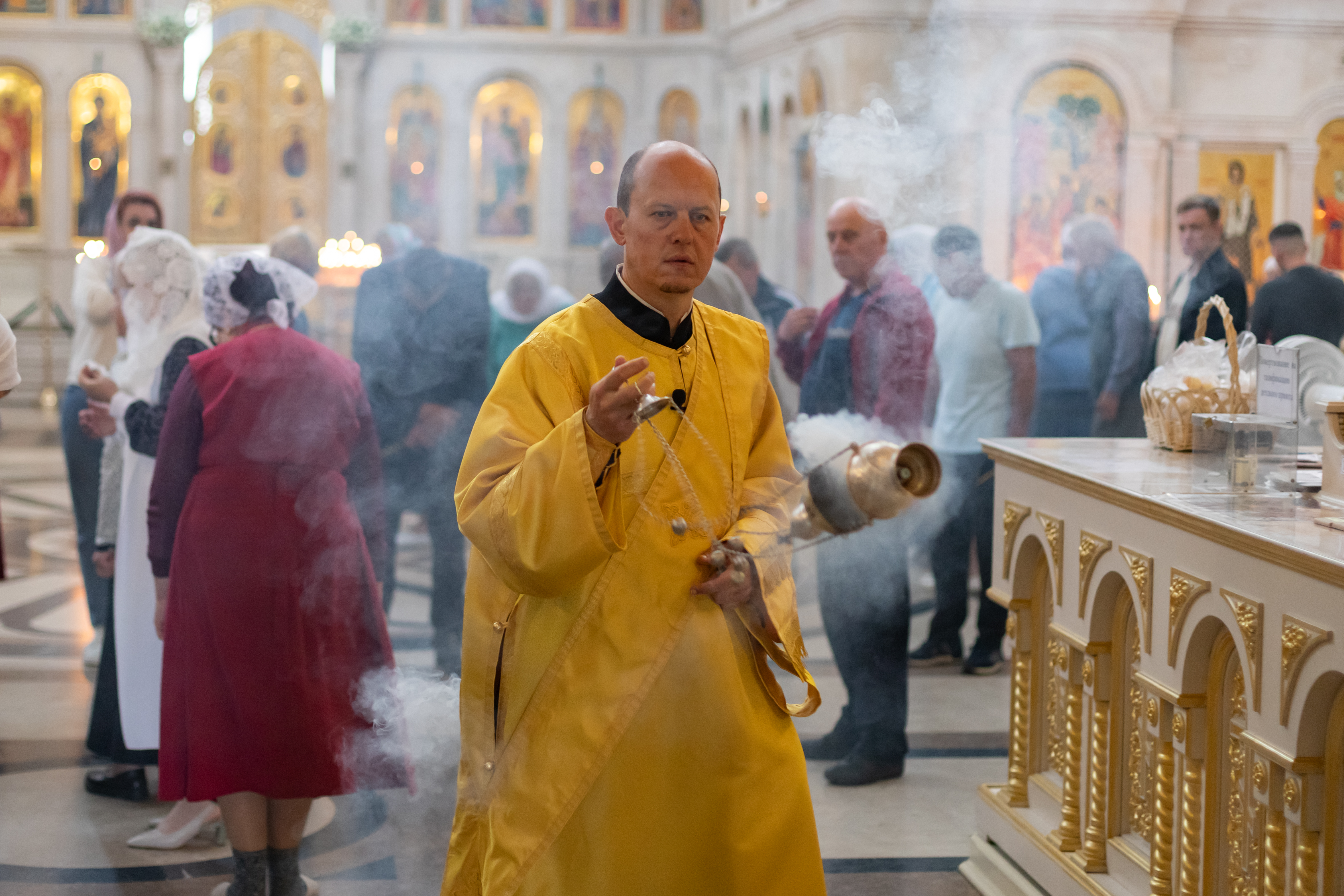 15.06.2025 Божественная Литургия в воскресенье, на неделе первой по Пятидесятнице, Всех святых 15 июня, на неделе первой по Пятидесятнице, Всех святых, в Троицком храме г. Коломна (Щурово) было совершено воскресное Богослужение. Литургию возглавил настоятель храма протоиерей Алексий Виноградов в сослужении клириков храма: протоиерея Димитрия Киреева, иерея Николая Глухова и протодиакона Димитрия Соловьева. За богослужением молились прихожане, сотрудники Троицкого храма, воспитанники детского социального центра и подопечные социального центра «Надежда» при Троицком храме. Богослужебные песнопения исполнил клиросный хор Троицкого храма г. Коломна (Щурово) под управлением Софьи Андреевны Германовой. ◀ ▶ x