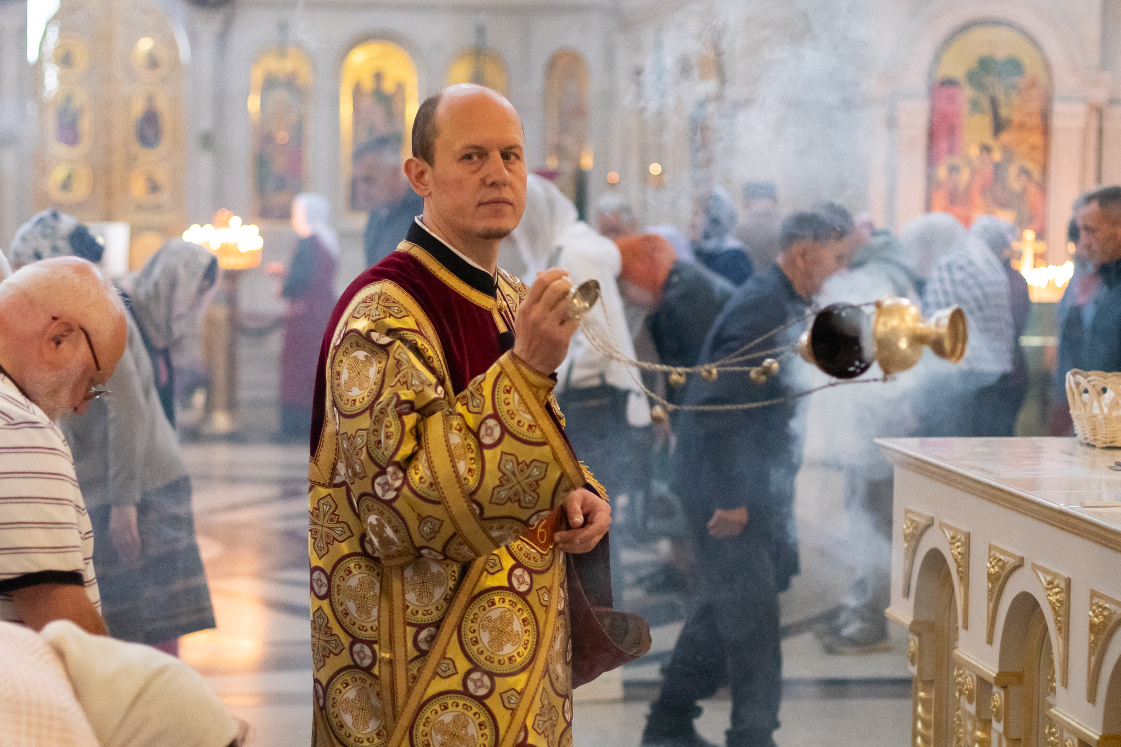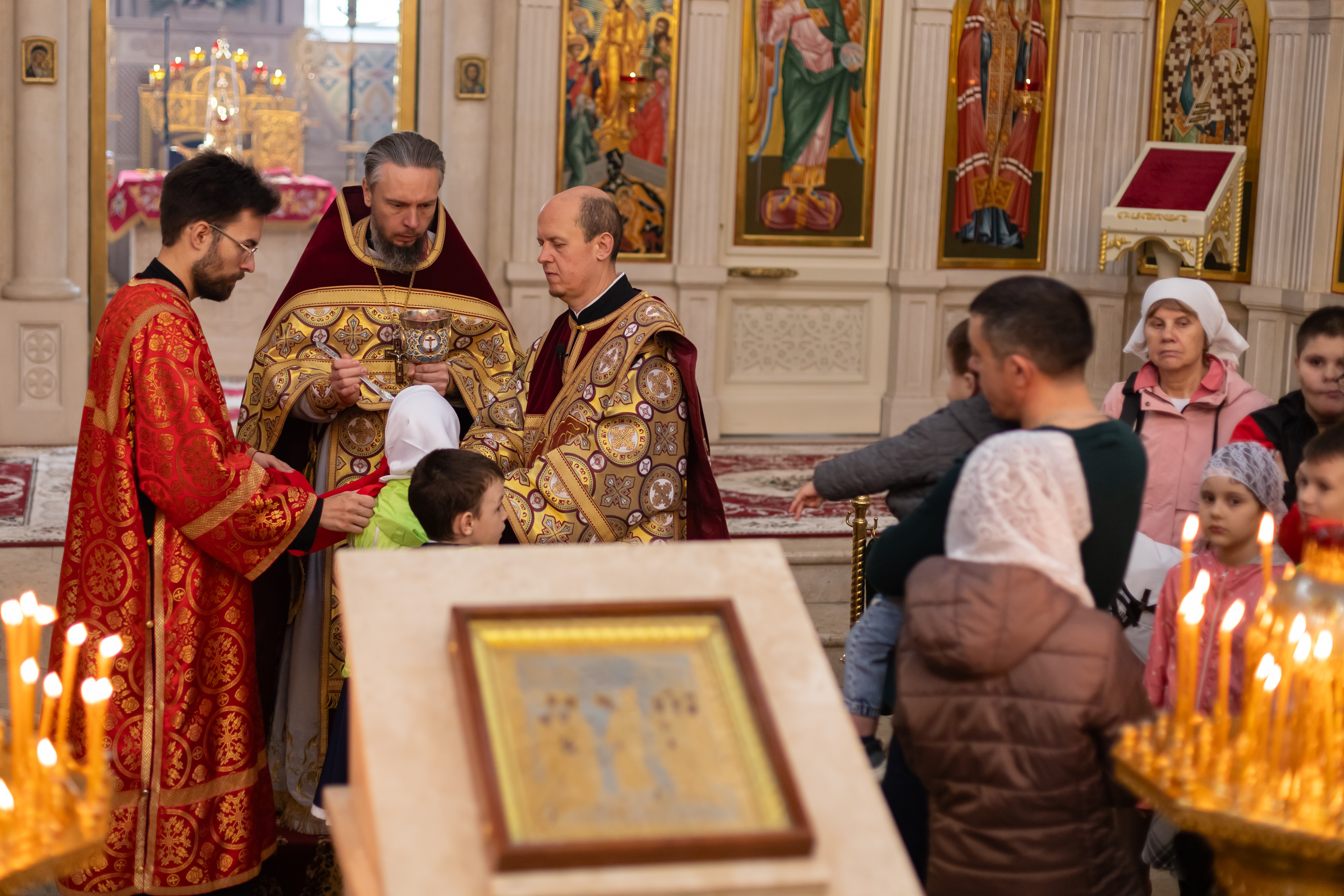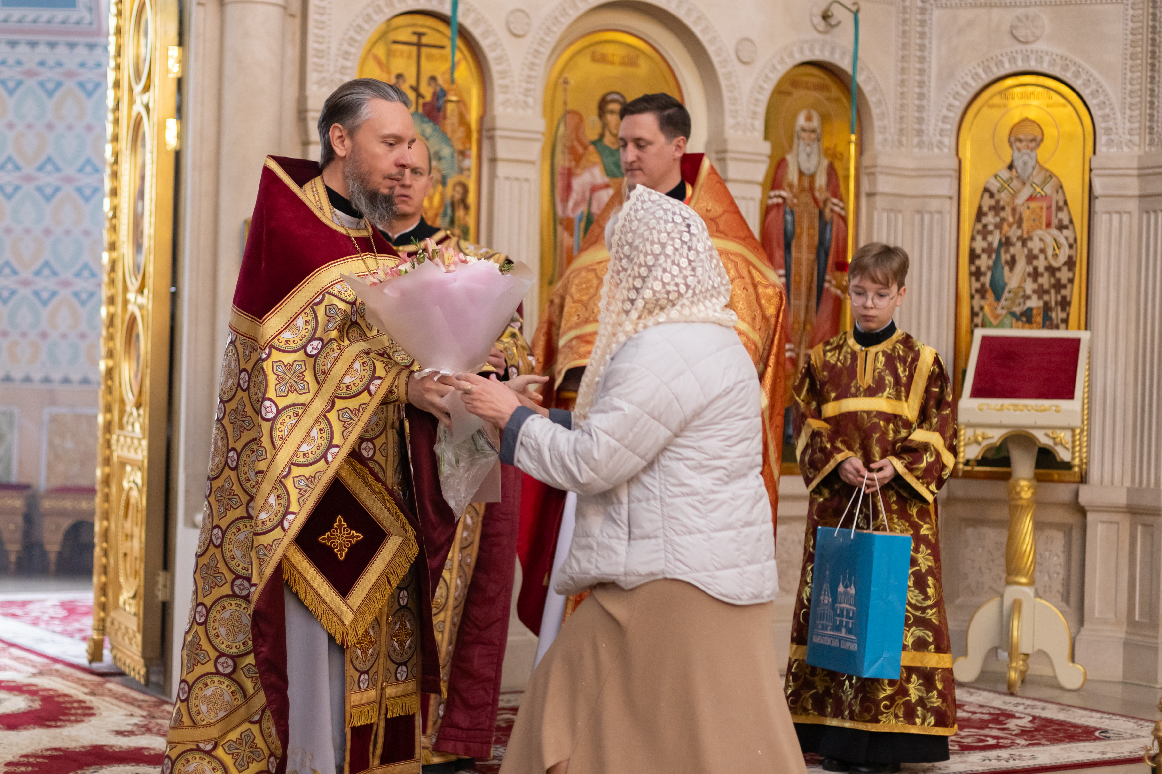 18.05.2025 Божественная Литургия в воскресенье, на неделе пятой по Пасхе, о самаряныне 18 мая, в воскресенье, на неделе 5-й по Пасхе, о самаряныне, в Троицком храме г. Коломна (Щурово) была совершена Божественная литургия. Богослужение возглавил настоятель храма протоиерей Алексий Виноградов в сослужении протоиерея Димитрия Киреева, иерея Николая Глухова и протодиакона Димитрия Соловьева. За богослужением молились прихожане, сотрудники Троицкого храма, воспитанники детского социального центра и подопечные социального центра «Надежда» при Троицком храме. Богослужебные песнопения исполнил клиросный хор Троицкого храма г. Коломна (Щурово) под управлением Софьи Андреевны Германовой. Сегодня совершается память великомученицы Ирины Македонской. По окончании богослужения настоятель храма протоиерей Алексий поздравил с днем тезоименинства всех присутствующих на Литургии Ирин, особо отметив Полищук Ирину Владимировну, которая много лет трудится во благо прихода, являясь помощником настоятеля и заместителем директора детского социально - реабилитационного центра. Многая и благая лета! ◀ ▶ x
