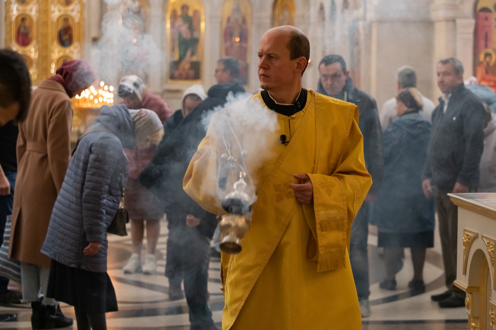 05.10.2025 Божественная Литургия в воскресенье, на неделе сеинадцатой по Пятидесятнице 5 октября, в Неделю 17-ю по Пятидесятнице, в Троицком храме г. Коломна (Щурово) было совершено воскресное Богослужение. Литургию возглавил клирик храма иерей Николай Глухов. Ему сослужили: протоиерей Димитрий Киреев и протодиакон Димитрий Соловьев. За богослужением молились прихожане, сотрудники Троицкого храма, воспитанники детского социального центра и подопечные социального центра «Надежда» при Троицком храме. Богослужебные песнопения исполнил клиросный хор Троицкого храма г. Коломна (Щурово) под управлением Софьи Андреевны Германовой. ◀ ▶ x