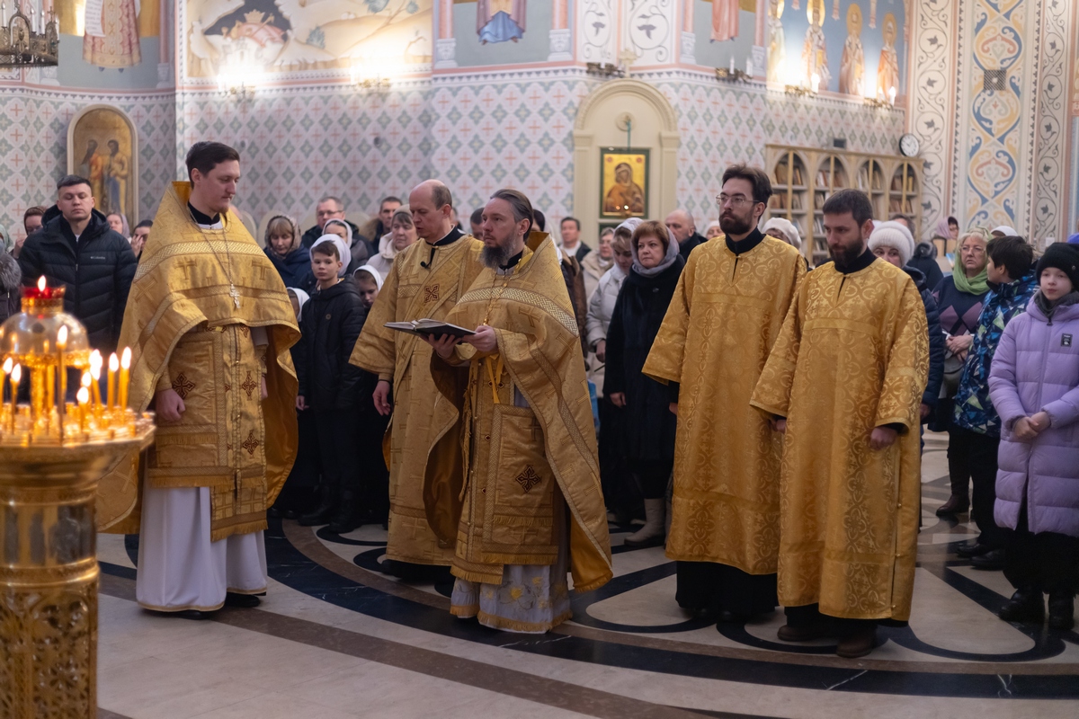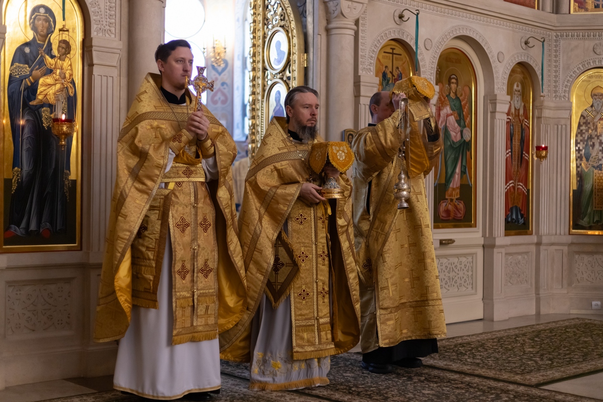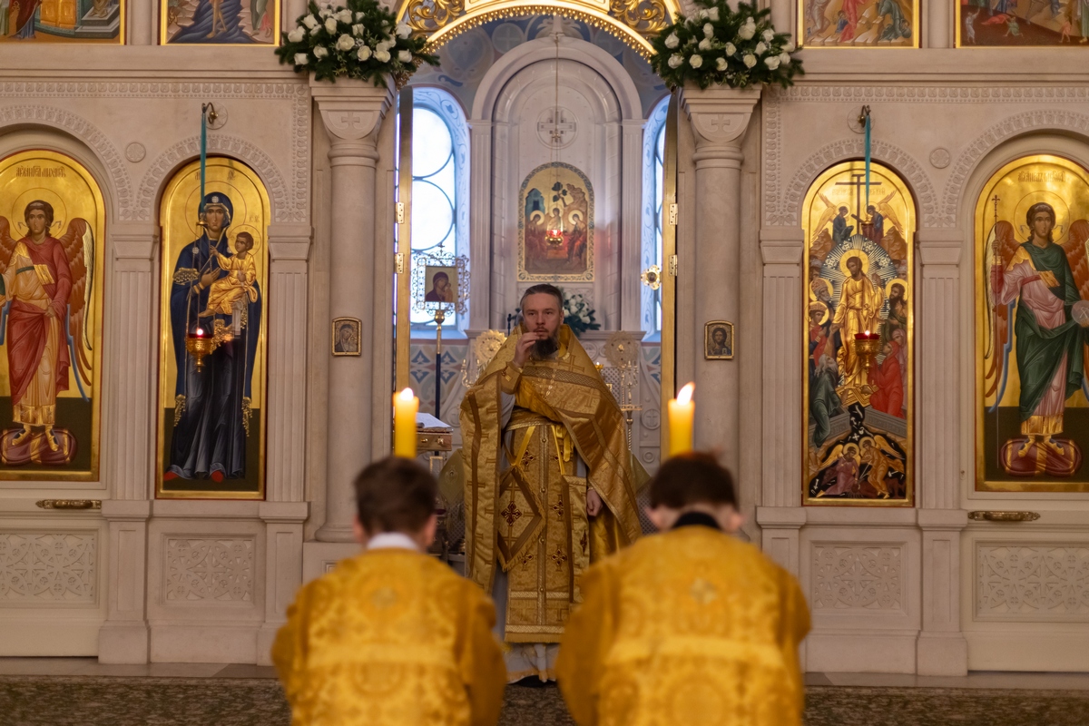 08.02.2026 Божественная Литургия в воскресенье, на неделе тридцать пятой по Пятидесятнице, о блудном сыне 8 февраля, в Неделю о блудном сыне, в Троицком храме г. Коломна (Щурово) было совершено воскресное Богослужение. Литургию возглавил настоятель храма протоиерей Алексий Виноградов в сослужении клириков храма: протоиерея Димитрия Киреева, иерея Николая Глухова и протодиакона Димитрия Соловьева. За богослужением молились прихожане, сотрудники Троицкого храма, воспитанники детского социального центра и подопечные социального центра «Надежда» при Троицком храме. Богослужебные песнопения исполнил клиросный хор Троицкого храма г. Коломна (Щурово) под управлением Софьи Андреевны Германовой. ◀ ▶ x