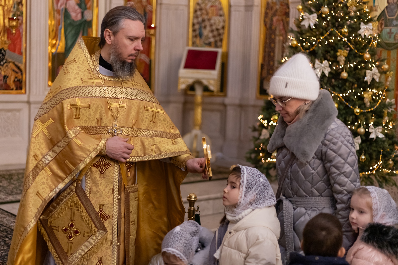 04.01.2026 Божественная Литургия в воскресенье, на неделе тридцатой по Пятидесятнице 4 января, в Неделю 30-ю по Пятидесятнице, перед Рождеством Христовым, святых отец, в Троицком храме г. Коломна (Щурово) было совершено воскресное Богослужение. Литургию возглавил настоятель храма протоиерей Алексий Виноградов в сослужении клириков храма: протоиерея Димитрия Киреева, иерея Николая Глухова и протодиакона Димитрия Соловьева. За богослужением молились прихожане, сотрудники Троицкого храма, воспитанники детского социального центра и подопечные социального центра «Надежда» при Троицком храме. Богослужебные песнопения исполнил клиросный хор Троицкого храма г. Коломна (Щурово) под управлением Софьи Андреевны Германовой. ◀ ▶ x