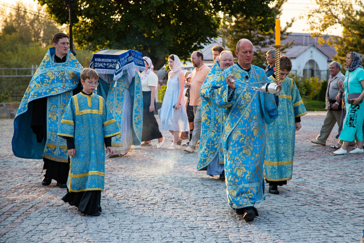 29.08.2024 Чин погребения Плащаницы Пресвятой Богородицы. В Троицком храме г. Коломна (Щурово) настоятель протоиерей Алексий Виноградов в сослужении клириков совершил Чин погребения Плащаницы Пресвятой Богородицы. Чин погребения Плащаницы – богослужебная особенность праздника Успения Пресвятой Богородицы. Это воспоминание о перенесении из Иерусалима Её Пречистого тела и погребения апостолами Его в Гефсимании. После Вознесения Иисуса Христа Матерь Его прожила на земле ещё десять или, по другим источникам, двадцать два года. Она любила молиться на местах, связанных с земной жизнью Её Сына - плакала на Голгофе, вспоминая Крестные страдания Спасителя, радовалась на месте Его Славного Воскресения и на Елеонской горе, где Он вознёсся. Мария молилась о том, чтобы Христос поскорее взял Её к Себе на небо. Однажды, когда Богородица молилась на Елеонской горе, Ей явился Архангел Гавриил и сказал, что через три дня земная жизнь Её окончится - Господь возьмёт Её к Себе. Мария очень обрадовалась этой вести и стала готовиться к Своему Успению. Из Апостолов только Иоанн Богослов, который заботился о Божией Матери, был в Иерусалиме - другие проповедовали в разных странах. Богоматерь желала проститься с ними, и Господь чудесным образом собрал к Ней всех Апостолов, кроме Фомы. Когда Апостолы узнали, для чего Господь собрал их, они очень огорчились, ведь Матерь Божия была для них общей Матерью и Госпожой. Но Мария утешала их, говоря, что никогда не оставит их и всех христиан и после смерти будет молиться за них. Потом Богородица благословила всех Апостолов. В час кончины необыкновенный свет озарил комнату, где на смертном одре лежала Богоматерь. Сам Христос, окружённый Ангелами, явился и принял Её пречистую душу. ◀ ▶ x