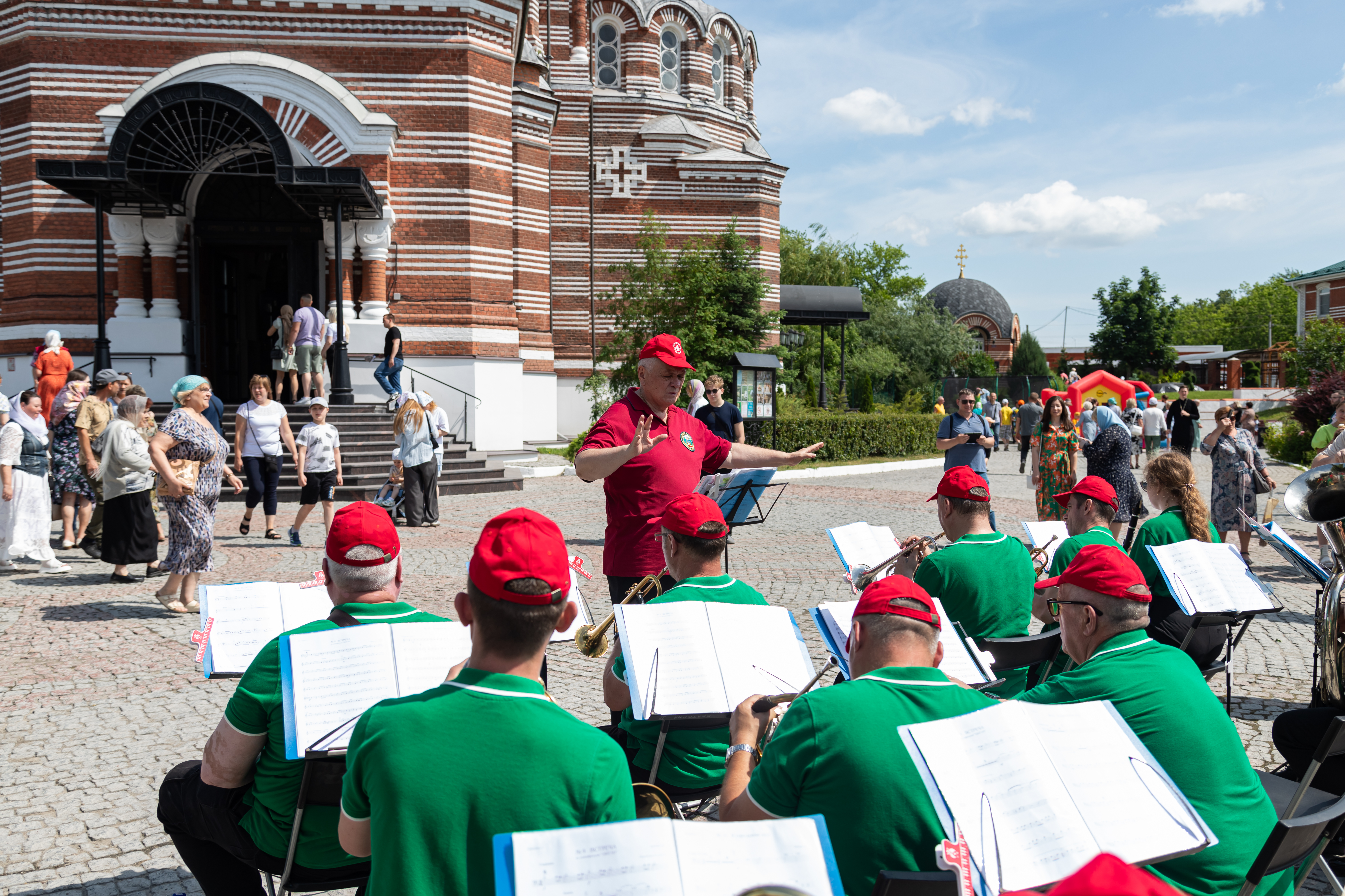 08.06.2025 День Святой Троицы. Пятидесятница 8 июня прихожане Троицкого храма г. Коломна (Щурово) торжественно отметили престольный праздник - День Святой Троицы, или Пятидесятницу. Праздничное богослужение возглавил настоятель храма протоиерей Алексий Виноградов, которому сослужили клирики: протоиерей Димитрий Киреев, иерей Николай Глухов и протодиакон Димитрий Соловьев. Духовные песнопения исполнил хор Троицкого храма под руководством регента Софьи Андреевны Германовой. На богослужении присутствовали многочисленные прихожане, а также воспитанники детского приюта при храме, учащиеся и преподаватели Православной гимназии святителя Филарета Московского, подопечные и сотрудники социального центра "Надежда". Богослужение началось с водосвятного молебна, а после Великой вечерни с коленопреклоненными молитвами состоялся традиционный крестный ход. По окончании богослужения настоятель храма протоиерей Алексий Виноградов обратился к верующим со словами поздравления, напомнил о значении праздника и пригласил всех на праздничные мероприятия, состоявшиеся на территории храма. Торжество для гостей прихода началось праздничным концертом, который открыл Духовой оркестр Коломенской филармонии под руководством Заслуженного работника культуры Российской Федерации Александра Пономарева и продолжился выступлением творческих коллективов города. Для детей и взрослых были организованы веселые конкурсы и развлечения, всевозможные мастер-классы и, ставшая уже традиционной, полевая кухня. Праздник Святой Троицы называют Днем рождения Церкви, потому что именно в этот день, две тысячи лет назад, иерусалимская община учеников Христа собралась вместе и, по обетованию Спасителя, получила благодать Святаго Духа. Все увидели, что на учеников Христа сошел Святой Дух и они заговорили на иных языках. В день Святой Троицы нам открывается, что Бог есть Триединая Личность, сущность и природа Которого – любовь. Бог Отец и Бог Сын и Бог Дух Святый – Триединый непостижимый Бог. Через таинство любви человек приближается к пониманию того, что чужая жизнь и чужая индивидуальность могут быть драгоценными, иногда даже более собственной жизни любящего. Бог же всегда пребывает в превечной любви и общении Ипостасей. Поэтому главный смысл этого праздника – откровение любви Божией, Его природы, способа Его бытия. Поздравляем с престольным праздником, дорогие братья и сестры! ◀ ▶ x