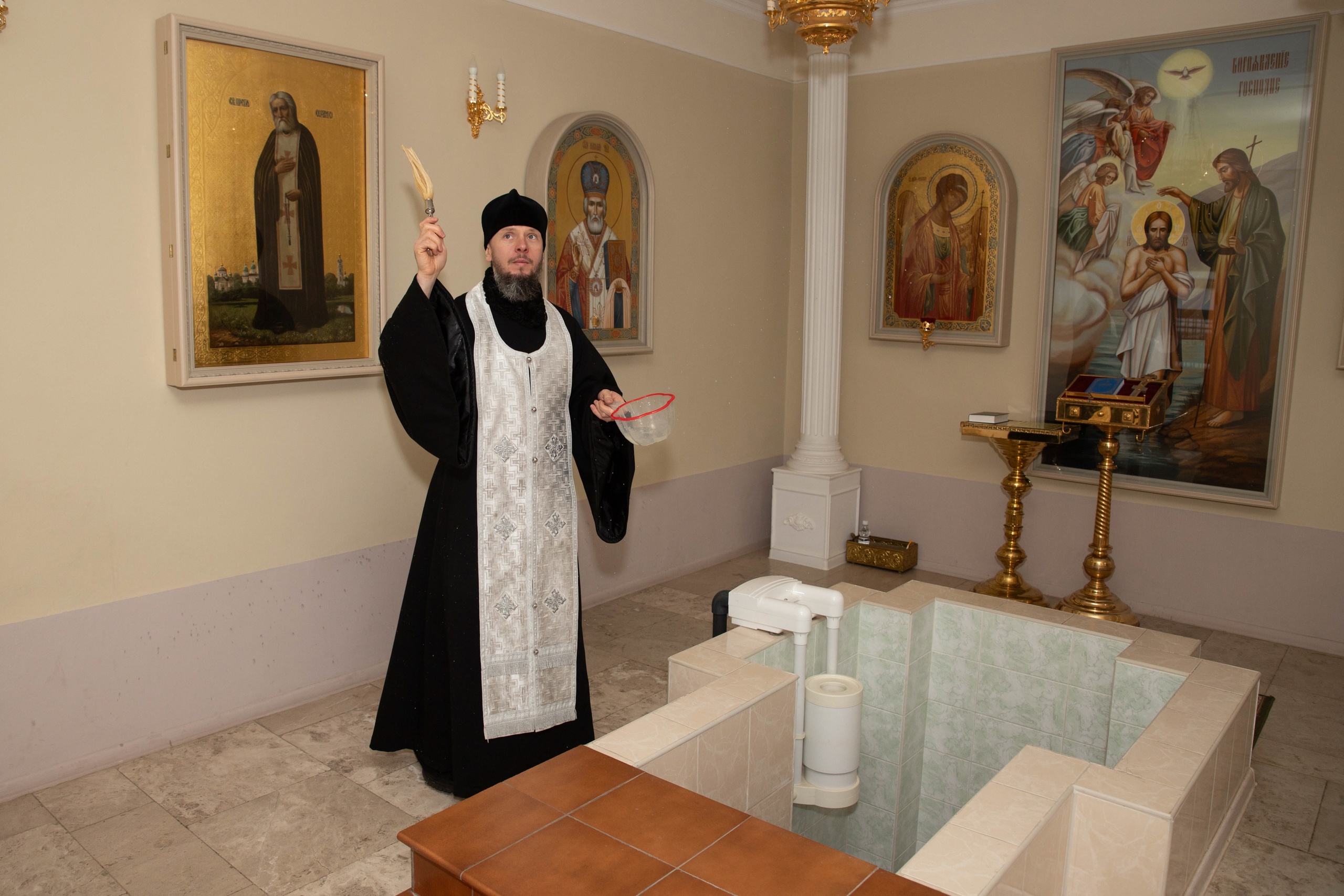19.01.2025 Освящение прихода. Крещение Господне 19 января, в праздник Крещения Господня, в Троицком храме г. Коломна (Щурово) настоятель протоиерей Алексий Виноградов в сослужении клириков храма совершил Литургию и чин Великого освящения воды. По окончании богослужения настоятель совместно с клириками храма прошли по приходским зданиям и окропили святой водой помещения, в которых воспитываются подопечные приюта и обучающиеся православной гимназии. ◀ ▶ x