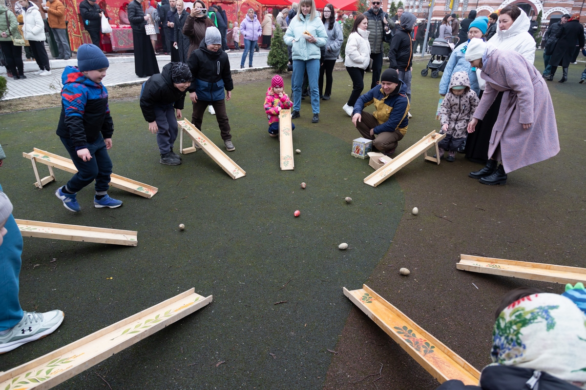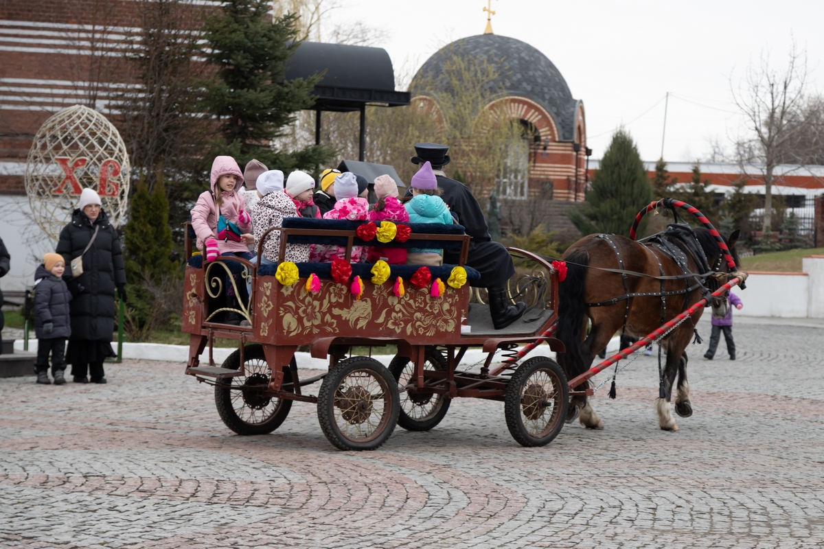 12.04.2026 Пасхальная поздняя Литургия и праздничные гуляния на приходе Пасхальную позднюю Литургию в Троицком храме г. Коломна (Щурово) совершил клирик храма протоиерей Димитрий Киреев в сослужении иерея Павла Чеснокова и протодиакона Димитрия Соловьева. На это богослужение смогли прийти те, кто не смог встретить весть о Христовом Воскресении на ночной Литургии – в первую очередь, прихожане с детьми. После богослужения и крестного хода, под звон колоколов, все были приглашены на праздник: веселое представление, щедрая пасхальная ярмарка, забавы и аттракционы для детей – сотни коломчан пришли к Троицкому храму разделить Пасхальную радость вместе. Не обошлось и без самого долгожданного аттракциона - катания на конной повозке. Сегодняшний день – день радости, мира и благоденствия. И, глядя на ликующих детей, радующихся взрослых, нельзя не поверить, что Воскресение Христово – это настоящая победа любви, которая сильнее смерти! Еще раз и от всего сердца поздравляем всех вас с праздником Светлого Христова Воскресения! ◀ ▶ x
