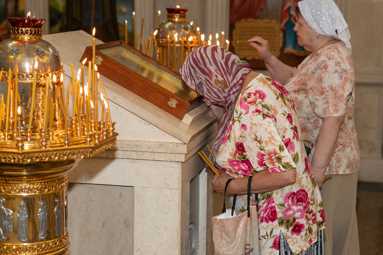 21.07.2024 Празднование явления иконы Пресвятой Богородицы во граде Казани 21 июля, в воскресенье, на неделе 4-й по Пятидесятнице совершается празднование явления иконы Пресвятой Богородицы во граде Казани. Накануне празднования в Троицкий храм г. Коломна (Щурово) был возвращен образ Казанской иконы Божией Матери. Данная святыня была вынесена из храма во времена безбожия и лихолетья, когда повсеместно закрывали и грабили храмы, но этот образ Божией Матери чудом сохранился и находился впоследствии у мирских людей. И вот теперь его передали обратно в храм. В этот день в храме была совершена Божественная литургия. Богослужение возглавил настоятель храма протоиерей Алексий Виноградов в сослужении клириков. За богослужением молились прихожане, сотрудники Троицкого храма, воспитанники детского социального центра при Троицком храме. Богослужебные песнопения исполнил клиросный хор Троицкого храма г. Коломна (Щурово) под управлением Софьи Андреевны Германовой. По окончании Литургии было совершено славление перед образом Пресвятой Богородицы и была вознесена молитва. ◀ ▶ x
