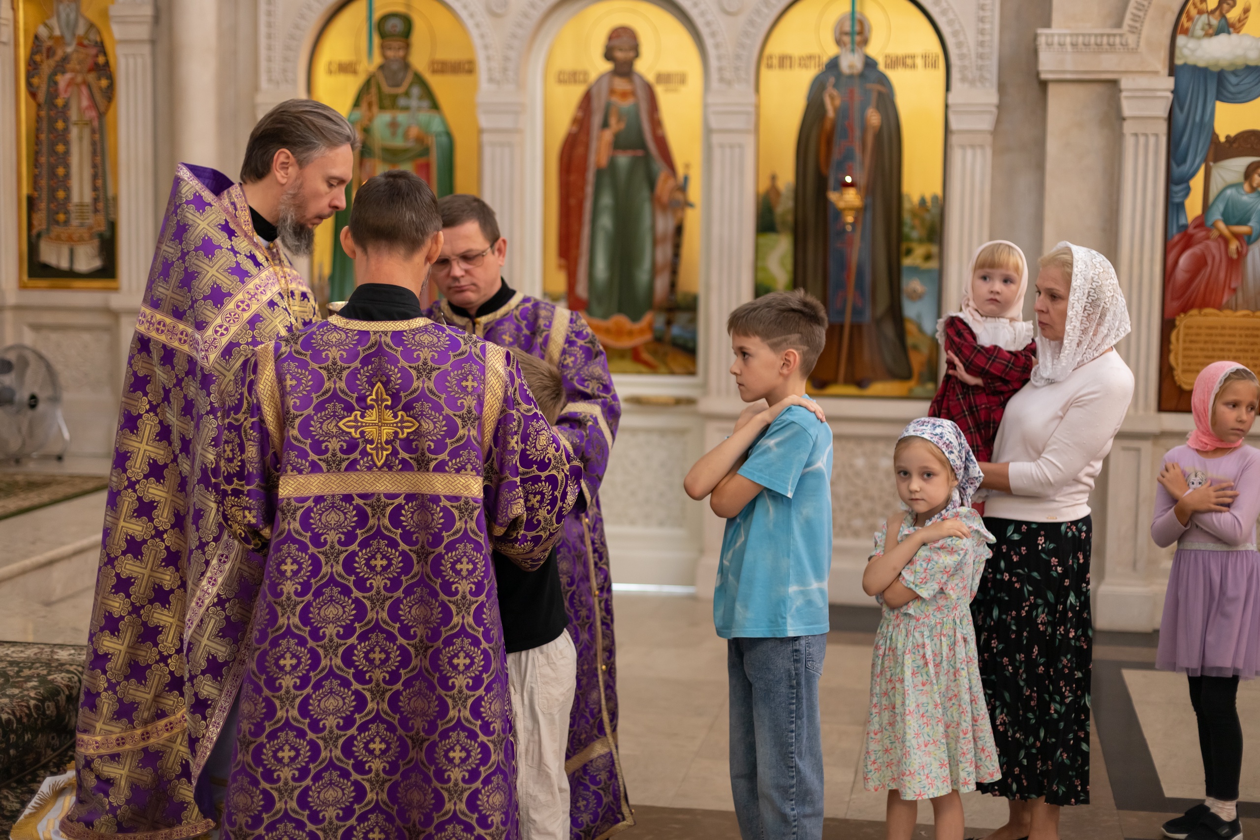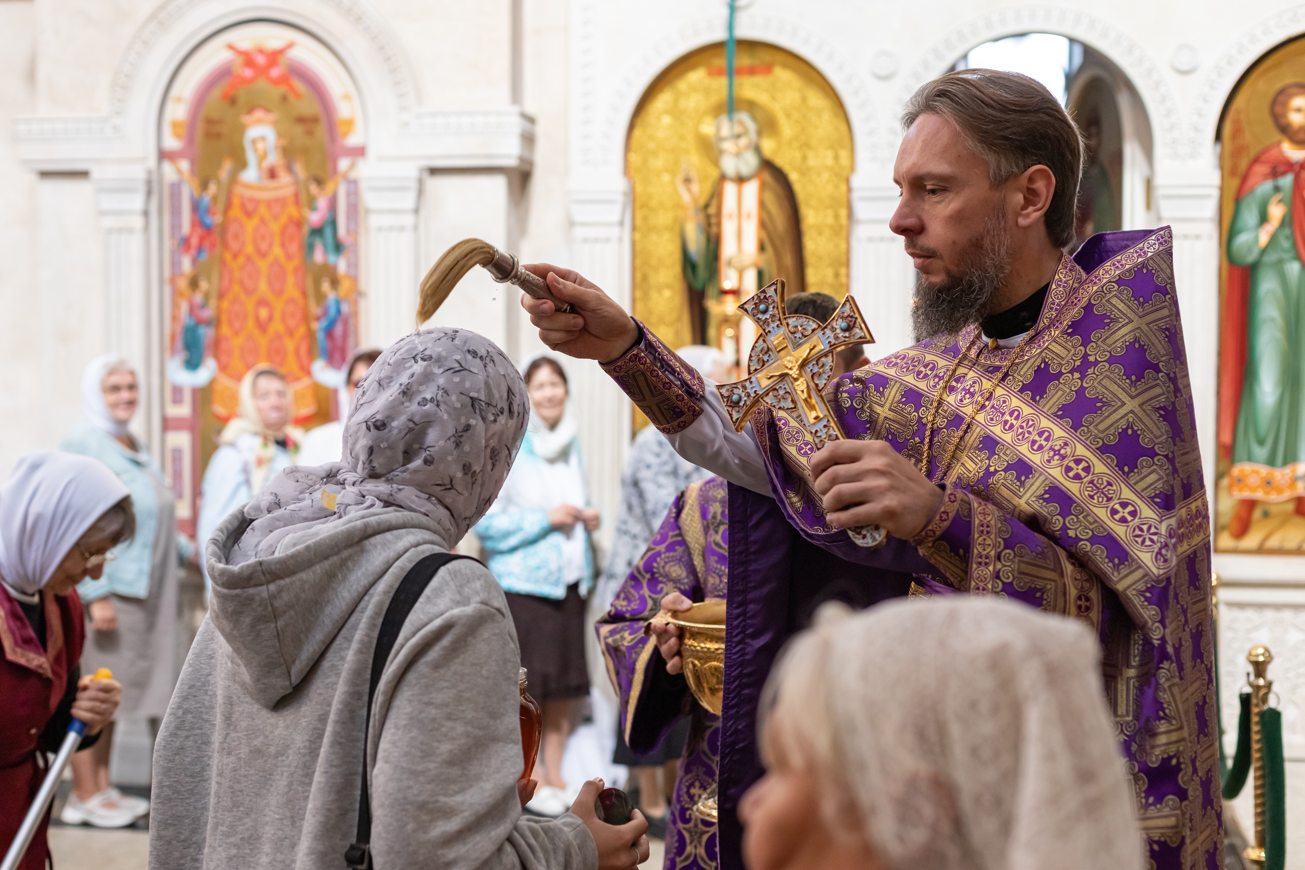 14.08.2025 Происхождение Честных Древ Животворящего Креста Господня 14 августа празднуется Происхождение Креста Господня, а также вспоминается мученический подвиг святых семи братьев Маккавеев, пострадавших вместе со своею матерью Соломониею и учителем Елиазаром. В этот день по уставу Церкви полагается чин малого освящения воды, поэтому до начала Божественной литургии был совершен водосвятный молебен, а затем настоятель храма возглавил Литургию в сослужении клириков: протоиерея Димитрия Киреева и иерея Николая Глухова. Накануне, на вечернем богослужении, на середину храма выносится Животворящий Крест Господень, для поклонения верующим. С этого дня начинается Успенский пост, верующие освящают плоды нового медового сбора. 14 августа также вспоминается великое христианское событие - крещение Руси, которое состоялось при князе Владимире Великом. Начало просвещения нашего Отечества совпало с праздником Происхождения Креста Господня. Изначально этот праздник был установлен по инициативе Константинополя, чтобы предотвратить всплеск различных заболеваний, который приходился тогда на август. Священники выносили из царской сокровищницы часть Животворящего Древа Господня, на котором был распят Христос Спаситель, и обносили его по всему городу в течение Успенского поста, совершая на улицах молебны. ◀ ▶ x