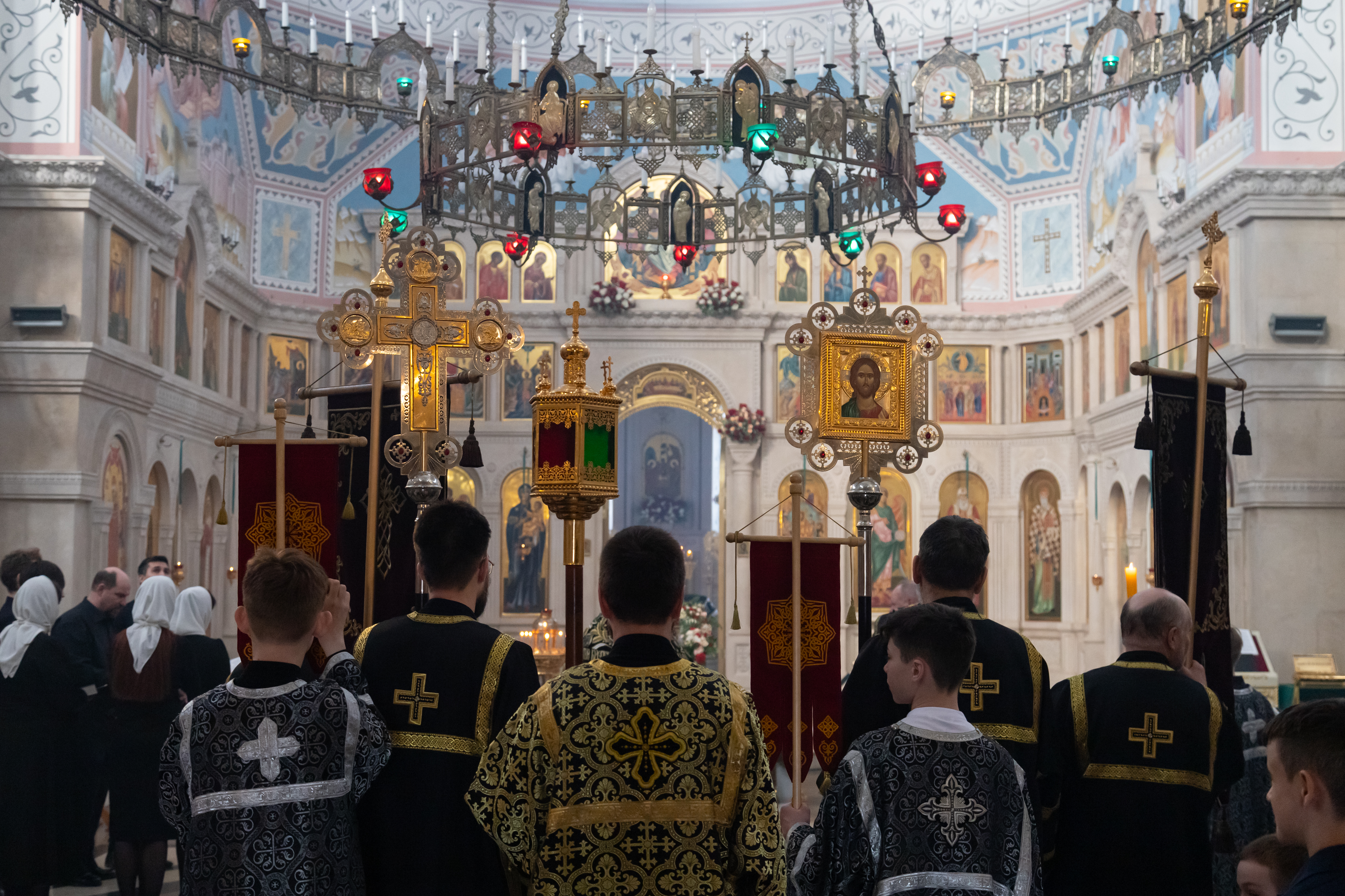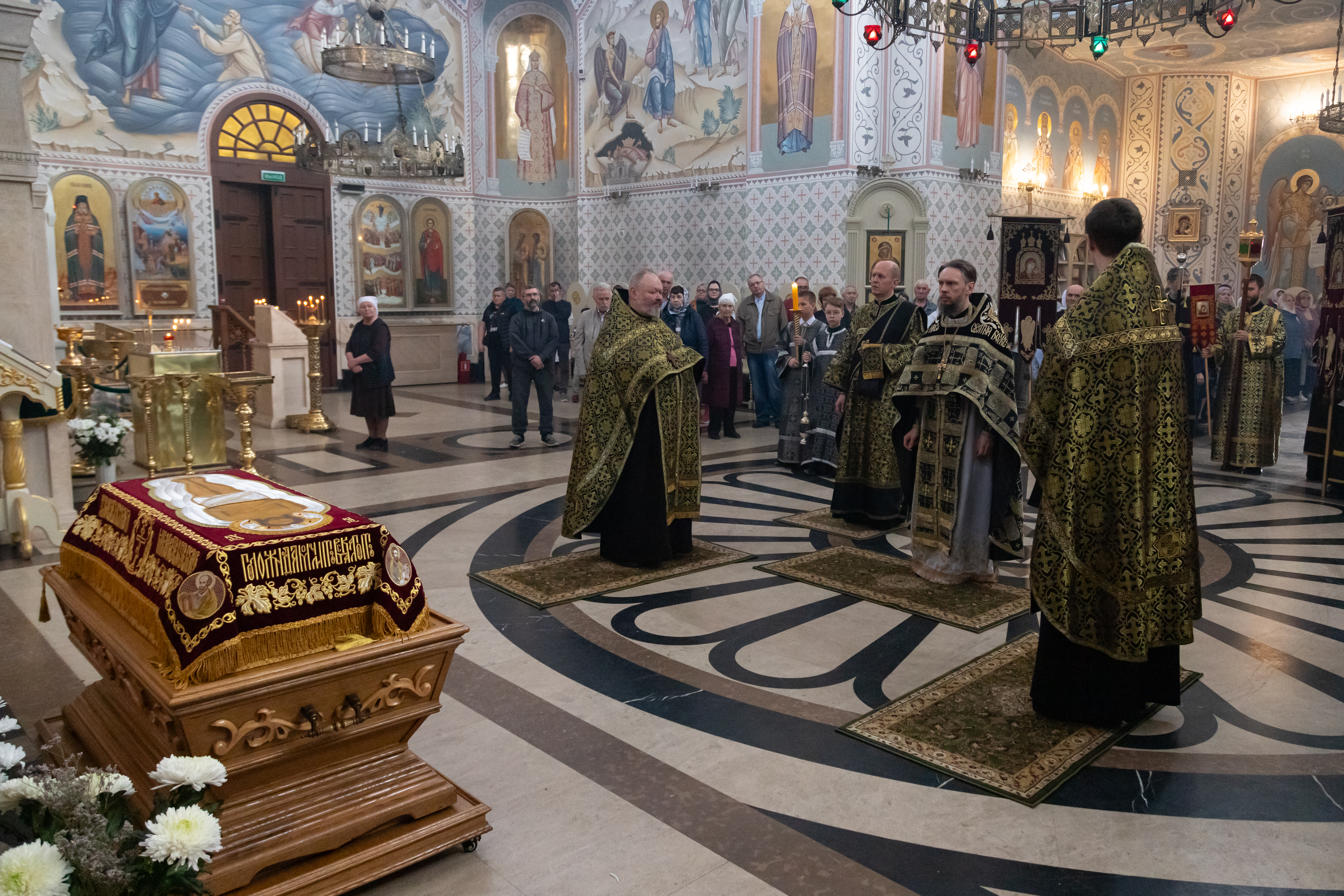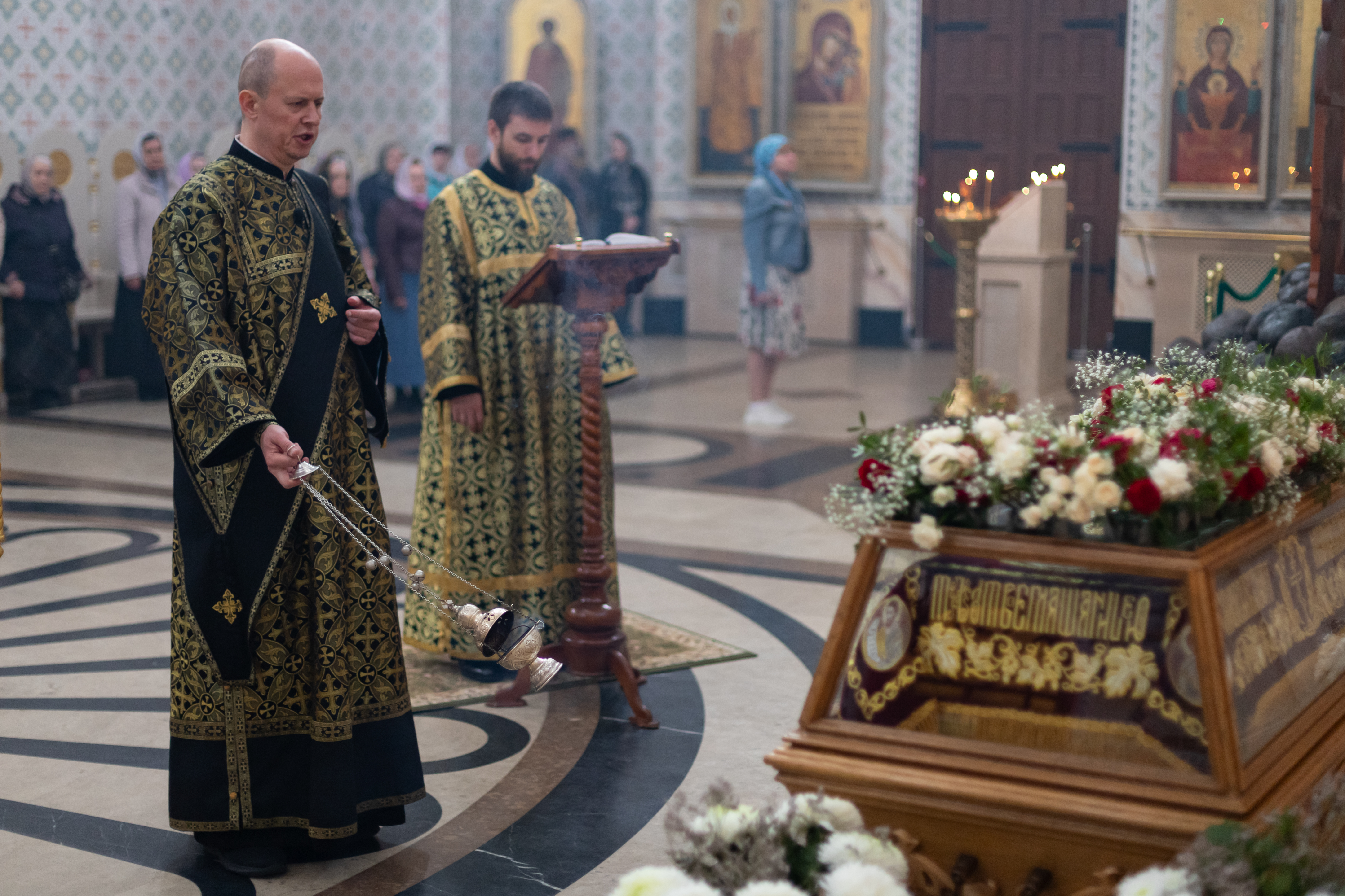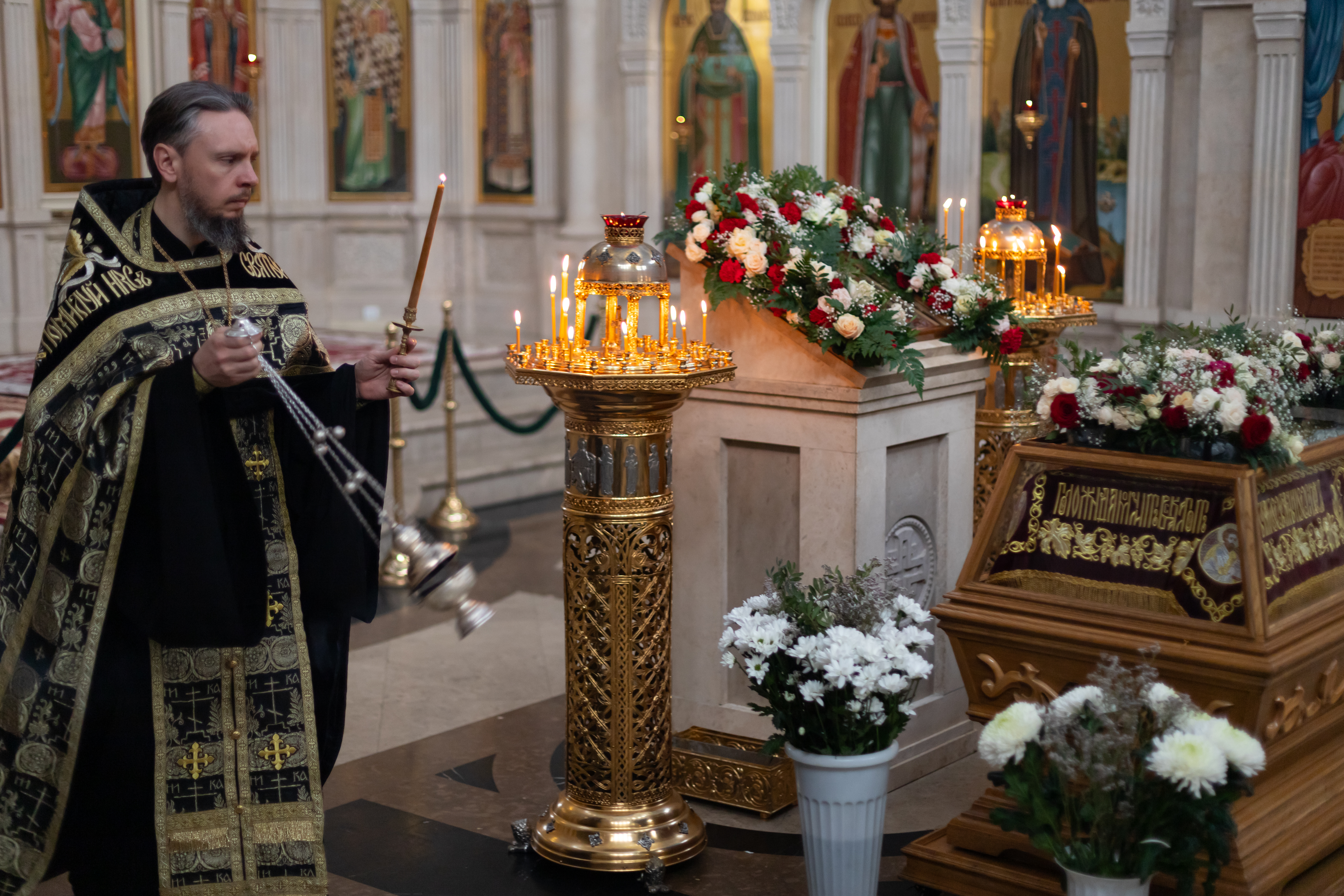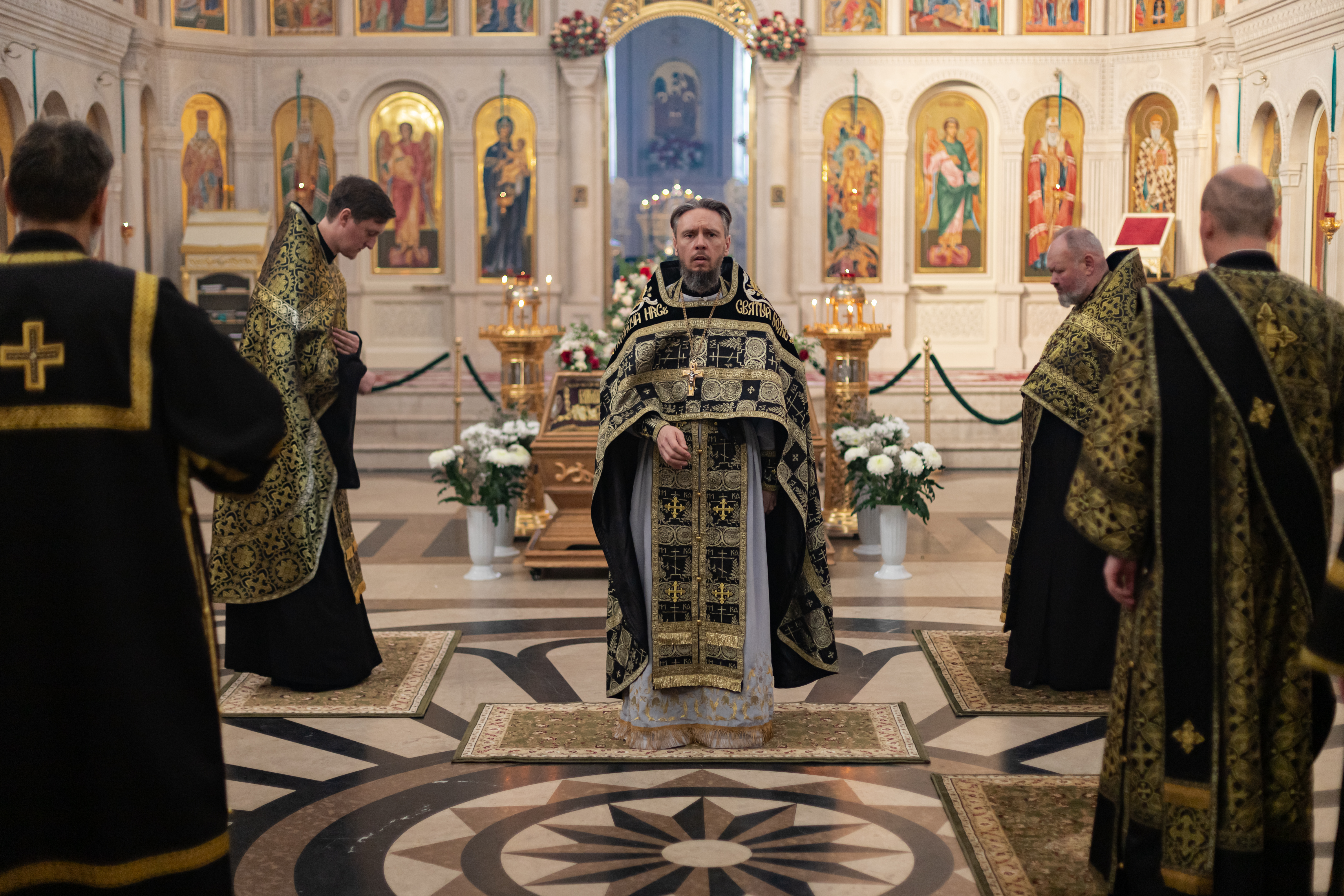 18.04.2025 Утреня Великой Субботы с Чином Погребения Плащаницы Вечером Великой Пятницы в Троицком храме г. Коломна (Щурово) была совершена Утреня Великой Субботы с Чином Погребения Плащаницы. По сути, Утреня с Чином Погребения Плащаницы – это отпевание умершего Иисуса Христа. Перед возложенной Плащаницей пелся 118-й псалом с особыми припевами от имени Пресвятой Богородицы. После этого Плащаница крестным ходом была обнесена вокруг Троицкого храма и водружена напротив Царских врат. Это знак того, что Иисус Христос и во гробе по Божеству своему пребывал с Отцем и Святым Духом. Вечером Великой Субботы Плащаница будет перенесена в алтарь, где останется на престоле до Отдания праздника Пасхи. ◀ ▶ x