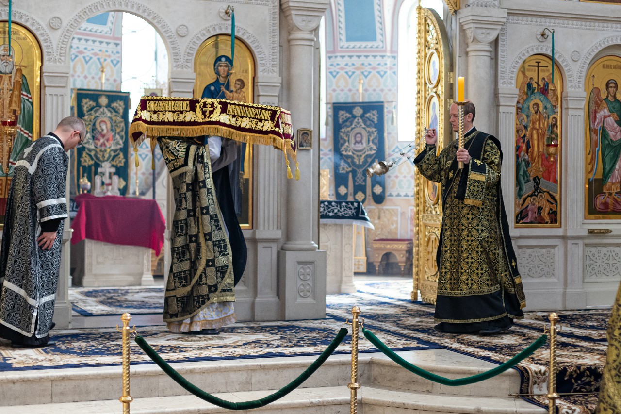 03.05.2024 Вечерня Великого Пятка и Вынос Плащаницы. Третьего мая в Троицком храме г. Коломна (Щурово) состоялось богослужение Великой Пятницы, которое возглавил настоятель храма протоиерей Алексий Виноградов в сослужении клириков храма. Совершались Царские Часы, Изобразительны, Вечерня Великого Пятка и Вынос Плащаницы. Великая Пятница – день Страданий и Крестной Смерти Господа Иисуса Христа. На читавшихся Царских Часах, каждому часу было положено свое Апостольское и Евангельское чтение: молящиеся снова переживают историю неправедного суда над Христом. В завершении богослужения совершился Вынос Плащаницы: собравшиеся в храме оплакали Почившего Христа и смогли воздать Ему целование. Сегодня же, на Утрене, будет совершаться Чин Погребения Плащаницы. "Вся тварь изменяшеся страхом, зрящи Тя на Кресте висима, Христе: солнце омрачашеся, и земли основания сотрясахуся, вся сострадаху Создавшему вся. Волею нас ради претерпевый Господи, слава Тебе". ◀ ▶ x
