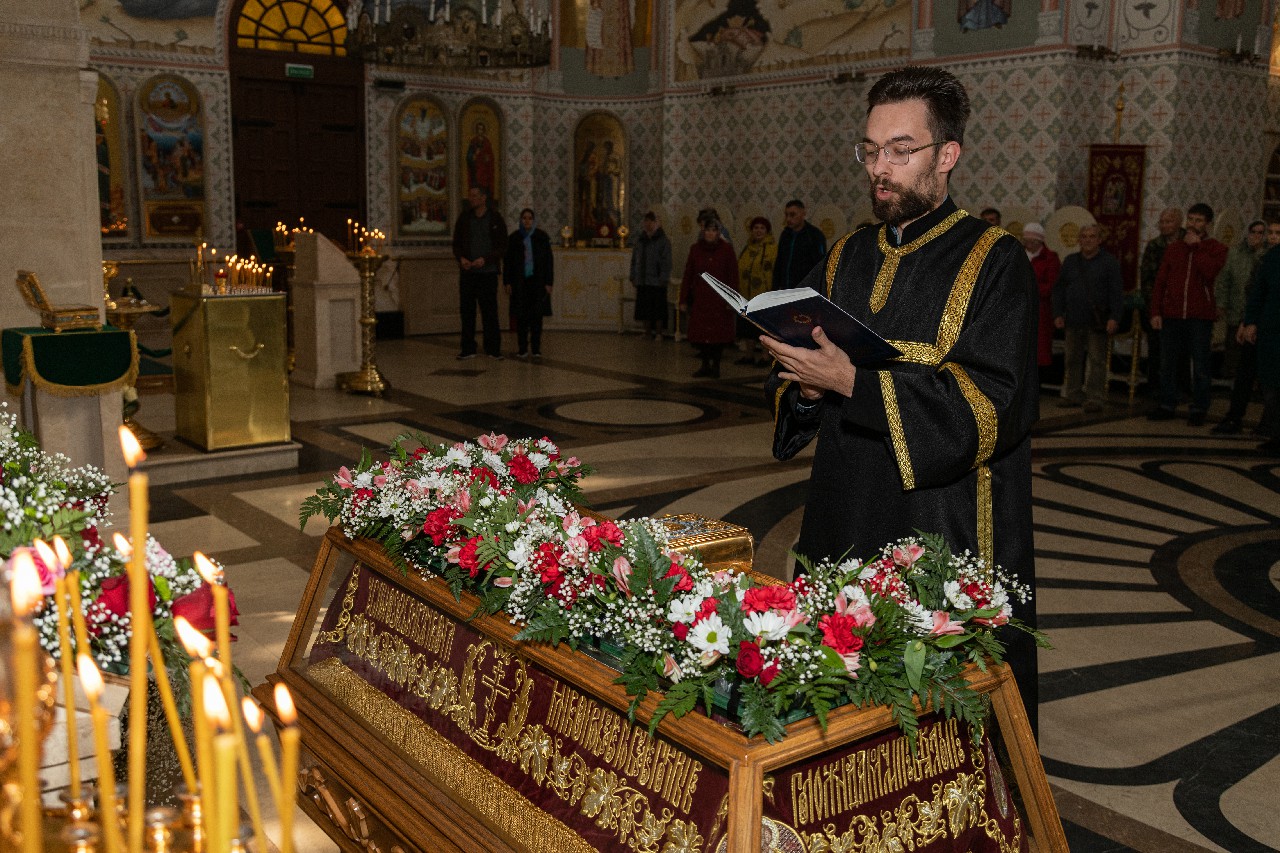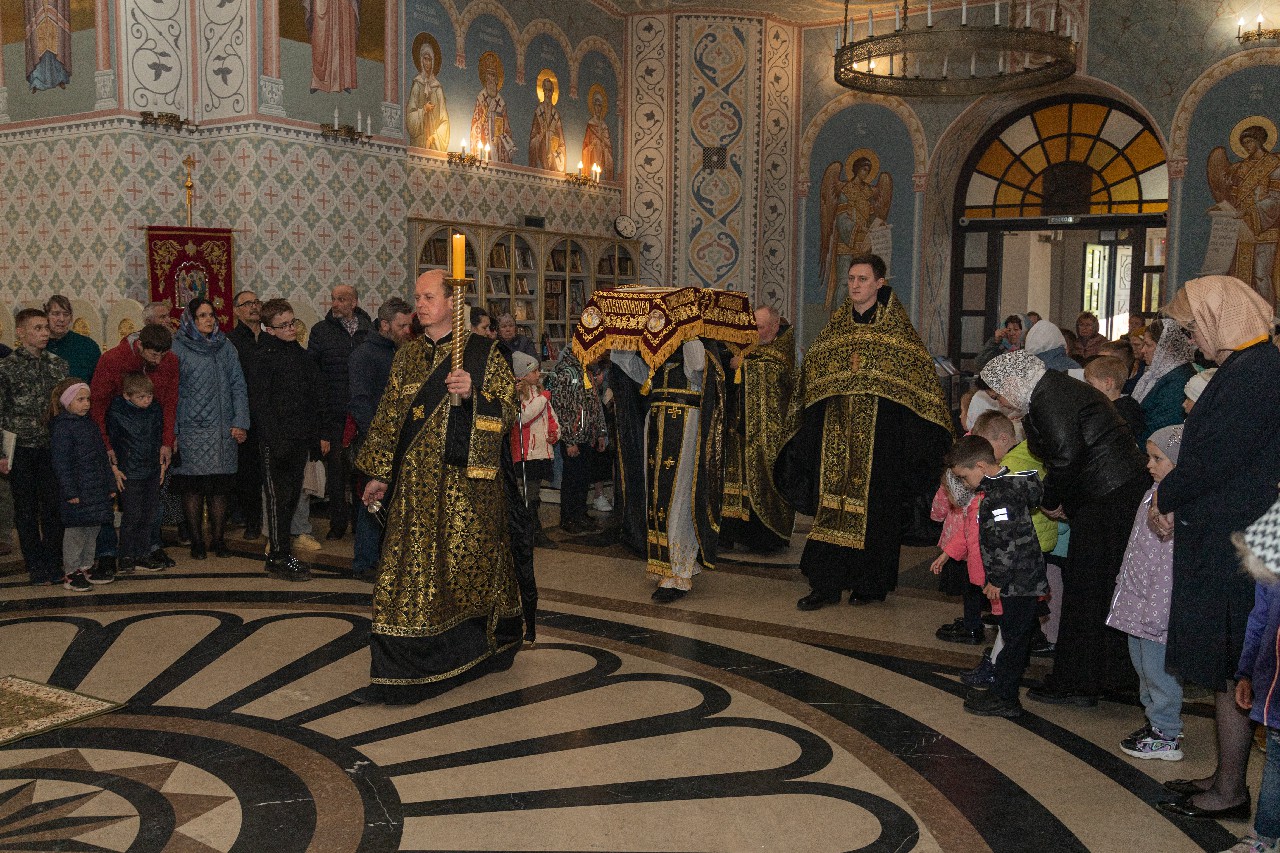 03.05.2024 Великая Пятница. Утреня Великой Субботы с Чином Погребения Плащаницы Вечером Великой Пятницы в Троицком храме г. Коломна (Щурово) была совершена Утреня Великой Субботы с Чином Погребения Плащаницы. По сути, Утреня с Чином Погребения Плащаницы – это отпевание умершего Иисуса Христа. Перед возложенной Плащаницей пелся 118-й псалом с особыми припевами от имени Пресвятой Богородицы. После этого Плащаница крестным ходом была обнесена вокруг Троицкого храма и водружена напротив Царских врат. Это знак того, что Иисус Христос и во гробе по Божеству своему пребывал с Отцем и Святым Духом. Вечером Великой Субботы Плащаница будет перенесена в алтарь, где останется не престоле до Отдания праздника Пасхи. ◀ ▶ x