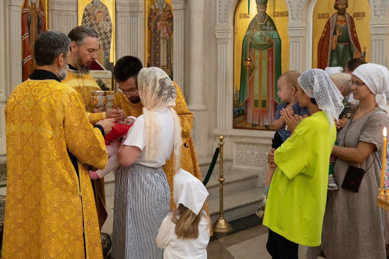 04.08.2024 Воскресное богослужение на неделе 6-й по Пятидесятнице, мироносицы равноап. Марии Магдалины 4 августа, в воскресенье, на неделе 6-й по Пятидесятнице, мироносицы равноап. Марии Магдалины, в Троицком храме г. Коломна (Щурово) была совершена Божественная литургия. Богослужение возглавил настоятель храма протоиерей Алексий Виноградов в сослужении клириков. За богослужением молились прихожане, сотрудники Троицкого храма, воспитанники детского социального центра при Троицком храме. Богослужебные песнопения исполнил клиросный хор Троицкого храма г. Коломна (Щурово) под управлением Софьи Андреевны Германовой. ◀ ▶ x