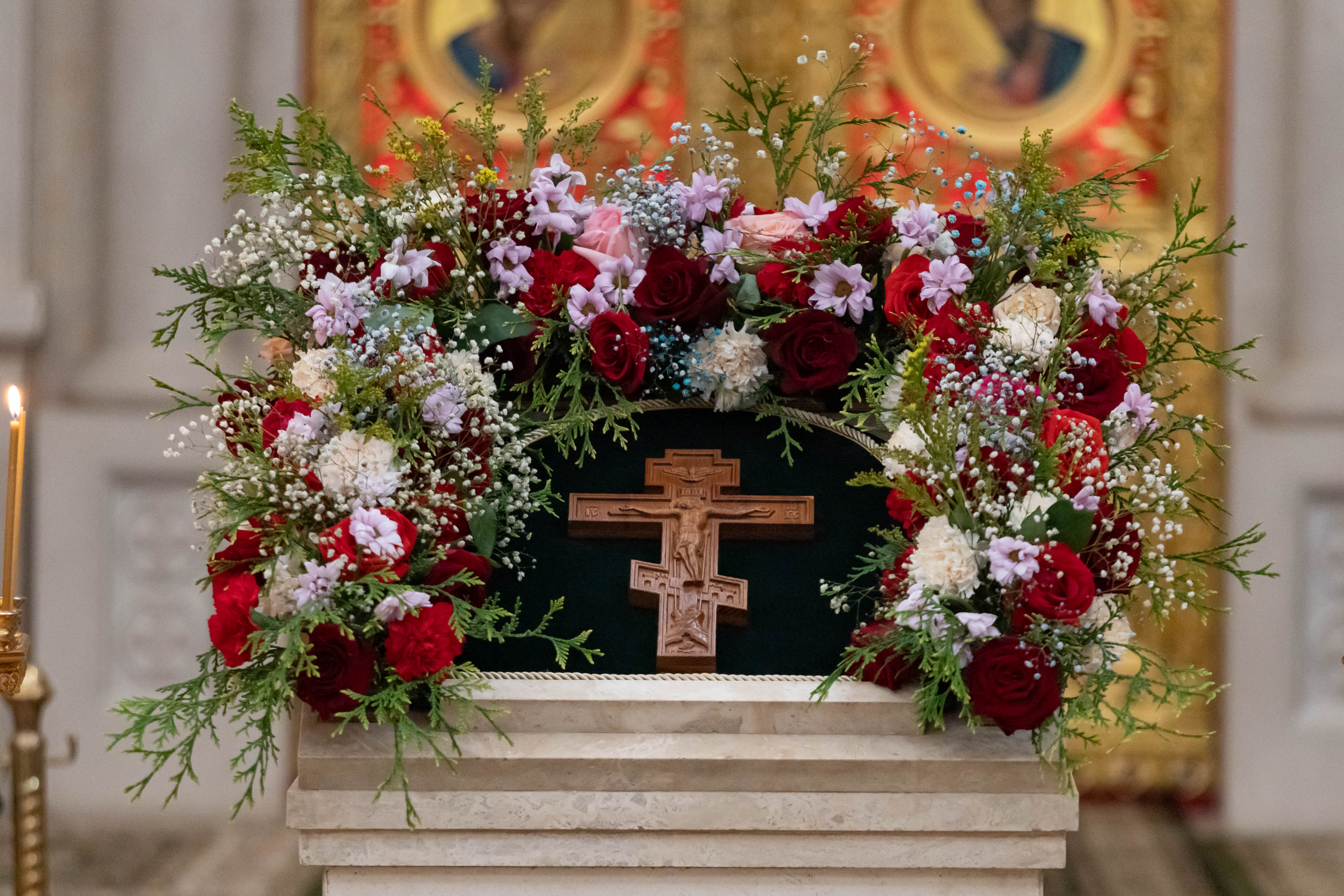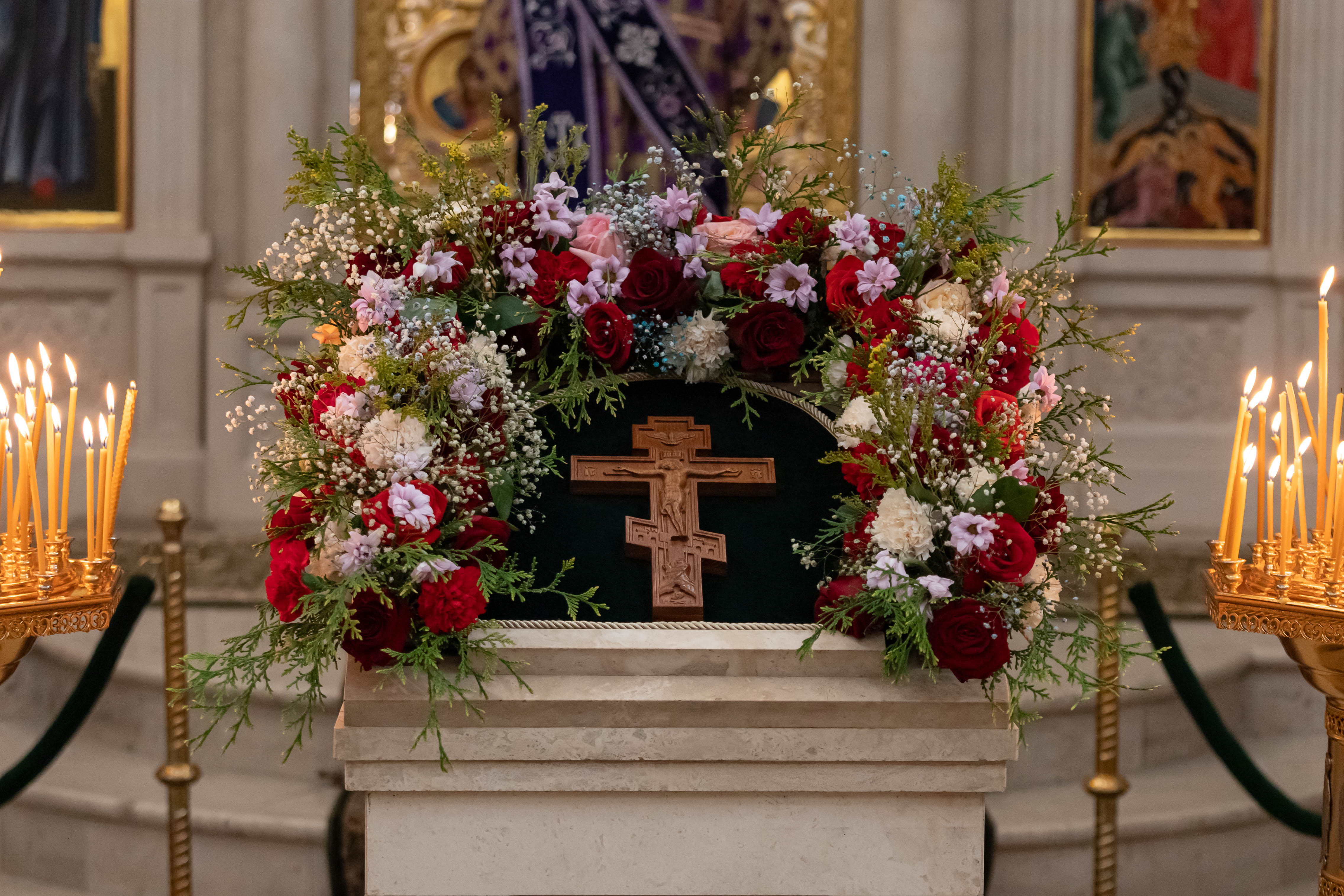 27.09.2024 Воздвижение Честного и Животворящего Креста Господня 27 сентября Православная Церковь отмечает празднование Воздвижение Честного и Животворящего Креста Господня. В этот день Божественную литургию в Троицком храме г. Коломна (Щурово) возглавил настоятель протоиерей Алексий Виноградов в сослужении клириков храма. Согласно Священному Преданию, Животворящий Крест Господень был обретен в 326 году в городе Иерусалиме. Событие это произошло вблизи горы Голгофы, где принял крестную смерть Господь наш Иисус Христос. Так же в этот день вспоминаем событие, связанное с возвращением Животворящего Креста из Персии, куда он был увезен вражескими завоевателями. В VII веке его вернул в Иерусалим греческий император Ираклий. Объединяющим фактом обоих событий являлось то, что Крест перед народом воздвигали, то есть поднимали. Поднятый крест обращали ко всем сторонам света, чтобы все люди вокруг обретенной святыни могли поклониться ему. Сегодня мы вновь взираем на Крест и вновь вспоминаем распятие Христово, Его страдания и горячую молитву за весь мир, ради прощения наших грехов. Спаси, Господи, людей Твоих и благослови все, что принадлежит Тебе. Даруй победы над врагами православным христианам, и сохрани силою Креста Твоего тех, среди которых пребываешь Ты. ◀ ▶ x