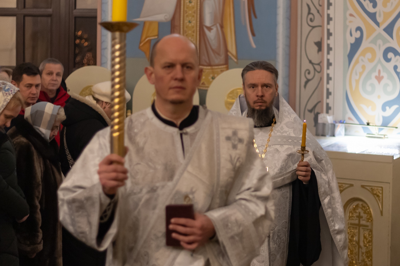 18.01.2026 Всенощное бдение в канун праздника Крещения Господня 18 января, в канун праздника Крещения Господа Бога и Спаса нашего Иисуса Христа, в Троицком храме г. Коломна (Щурово) было совершено всенощное бдение, которое возглавил настоятель храма протоиерей Алексий Виноградов в сослужении клириков: протоиерея Димитрия Киреева, иерея Николая Глухова и протодиакона Димитрия Соловьева. Всенощное бдение праздника Крещения состоит из великого повечерия, литии, утрени и первого часа. За богослужением молились прихожане и сотрудники Троицкого храма. Богослужебные песнопения исполнил клиросный хор Троицкого храма г. Коломна (Щурово) под управлением Софьи Андреевны Германовой. ◀ ▶ x
