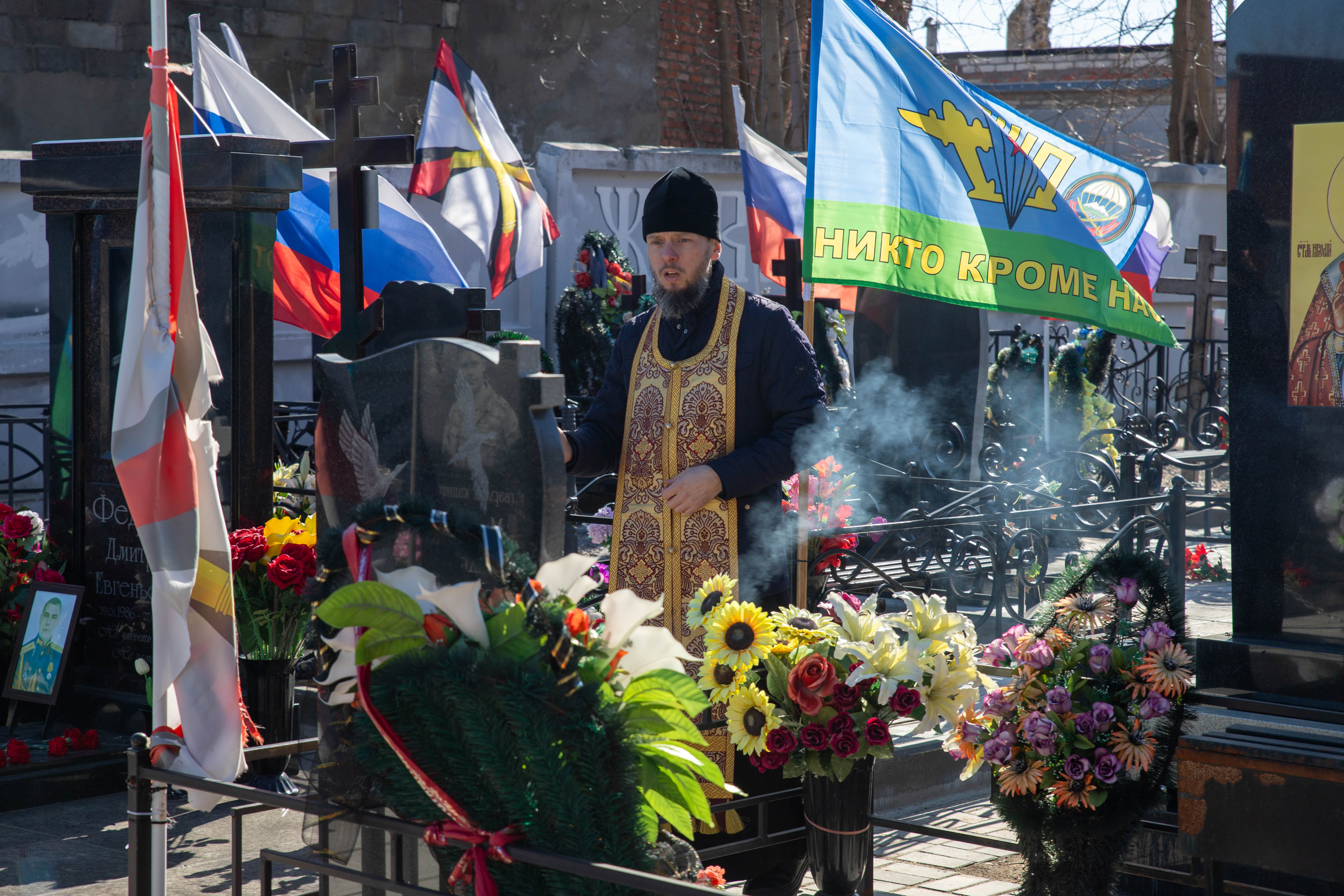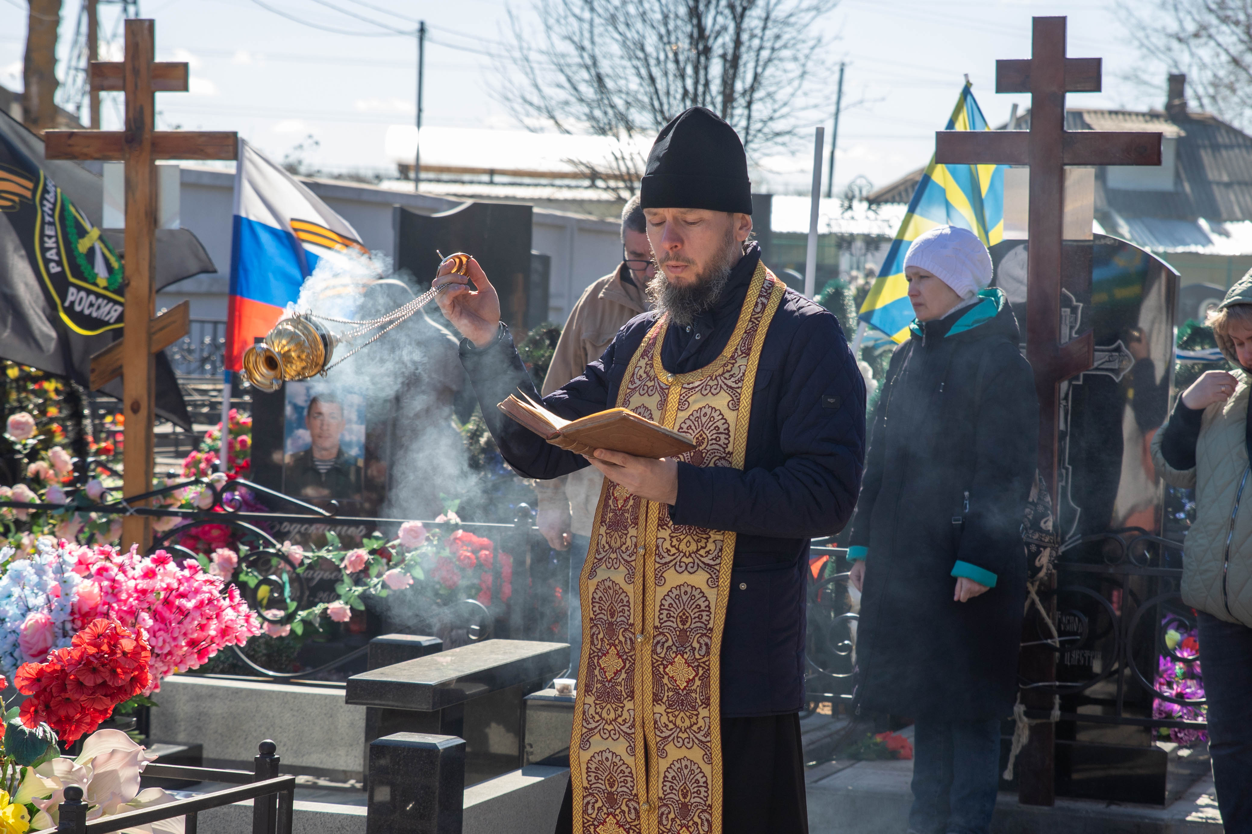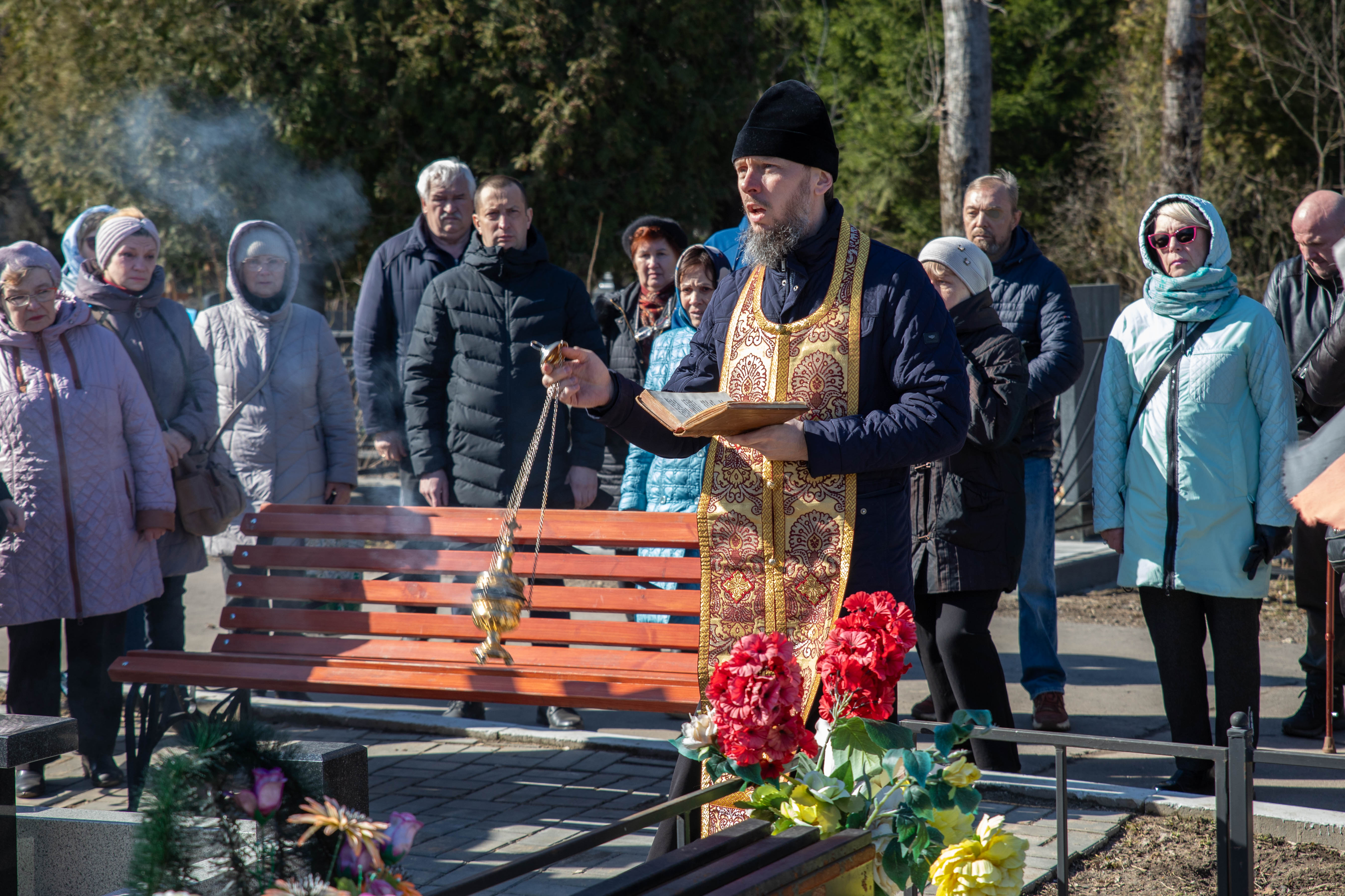 22.03.2025 Заупокойная панихида по воинам, погибшим при выполнении задач специальной военной операции 22 марта 2024 года настоятель Троицкого храма г. Коломна (Щурово) протоиерей Алексий Виноградов совершил заупокойную панихиду на Старом кладбище г. Коломна по воинам, погибшим при выполнении задач специальной военной операции. Почтить память погибших российских солдат пришли их родственники и семьи. По завершении панихиды протоиерей Алексий Виноградов сказал слово, в котором отметил величие подвига воинов жизнь свою за веру и Отечество положивших. Затем состоялось возложение цветов к могилам воинов. ◀ ▶ x
