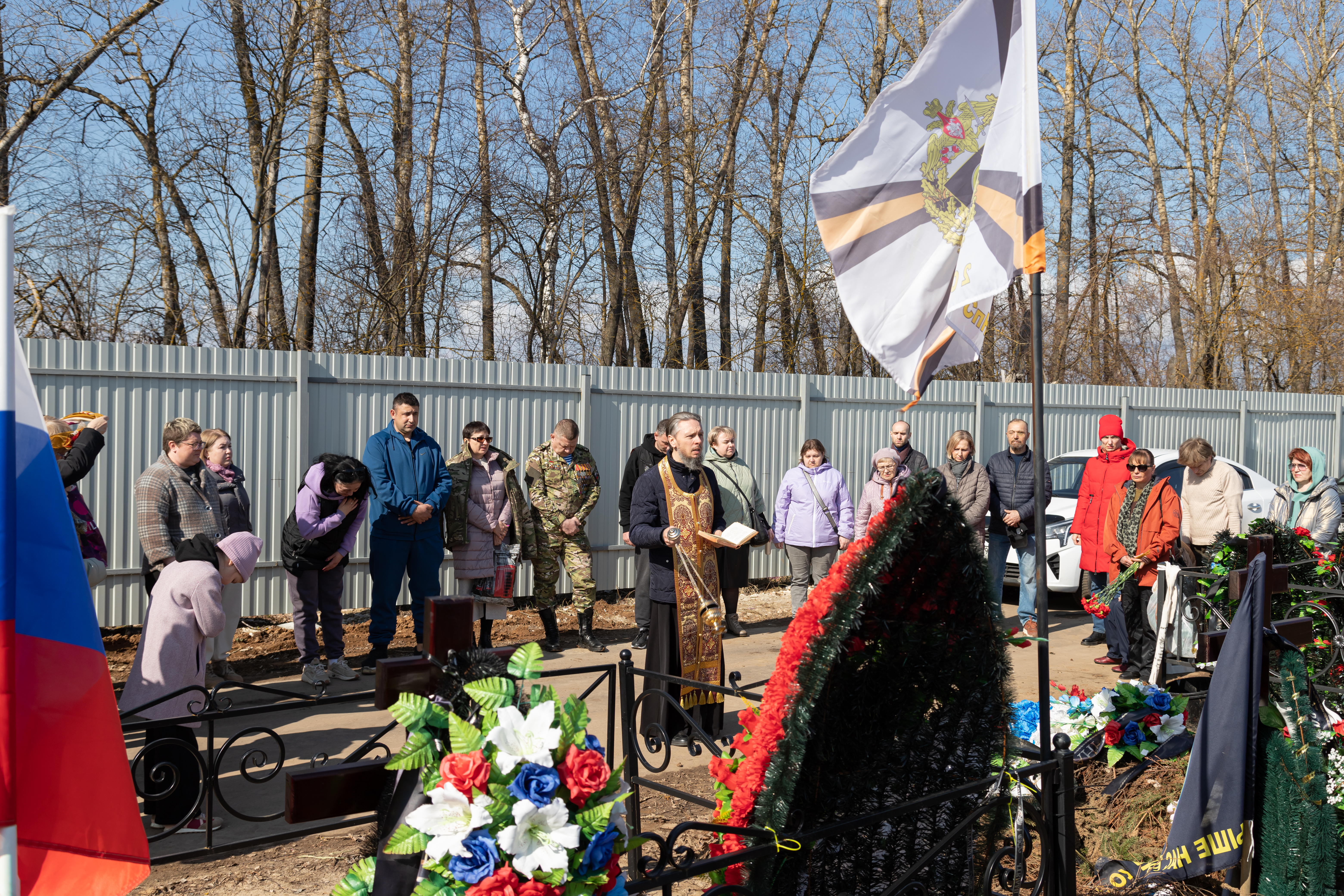 29.03.2025 Заупокойная панихида на Новогородищенском кладбище г. Коломна по воинам, погибшим при выполнении задач специальной военной операции 29 марта благочинный 1-го Коломенского благочиннического округа, настоятель Троицкого храма г. Коломна (Щурово) протоиерей Алексий Виноградов совершил заупокойную панихиду на Новогородищенском кладбище г. Коломна по воинам, погибшим при выполнении задач специальной военной операции. Почтить память погибших российских солдат пришли их родственники и семьи. По завершении панихиды протоиерей Алексий Виноградов сказал слово, в котором отметил величие подвига воинов, жизнь свою за веру и Отечество положивших. Затем состоялось возложение цветов к могилам воинов. ◀ ▶ x