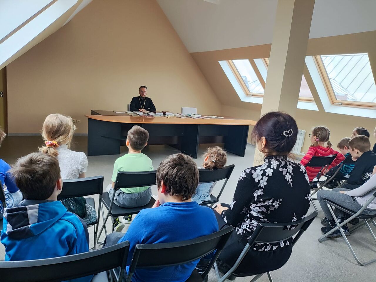 04.04.2023 День Православной книги в Воскресной школе Есть чудо на земле с названьем дивным – книга! Великой красоты и сложности предел, Животворящий сплав прошедшего и мига, Фундамент для грядущих добрых дел. Книги всегда почитались в народе как большая ценность. Особенно благоговейно люди относились к книгам, в которых написано о Боге. Поэтому Библию, Евангелие, Псалтирь и Молитвослов читают стоя, прежде осенив себя крестным знамением. День Православной книги встретили учащиеся воскресной школы в минувшее воскресенье. Настоятель Троицкого храма протоиерей Алексий Виноградов рассказал детям историю создания сначала рукописных книг в нашей стране, потом первой печатной под названием "Апостол", созданной в 1564 году диаконом Иваном Фёдоровым. В продолжение беседы батюшка рассказал, что такое православная книга в наше время. Библии для детей, православные сказки, притчи, жития святых - множество интересных книг написано для детей, и в их основе непреложные добродетели: добро и зло, любовь и прощение, милосердие и забота о ближних. Продолжились занятия по традиции, и учащиеся с удовольствием готовили к Пасхе песни и рисунки, изучали Закон Божий и Новый Завет. ◀ ▶ x