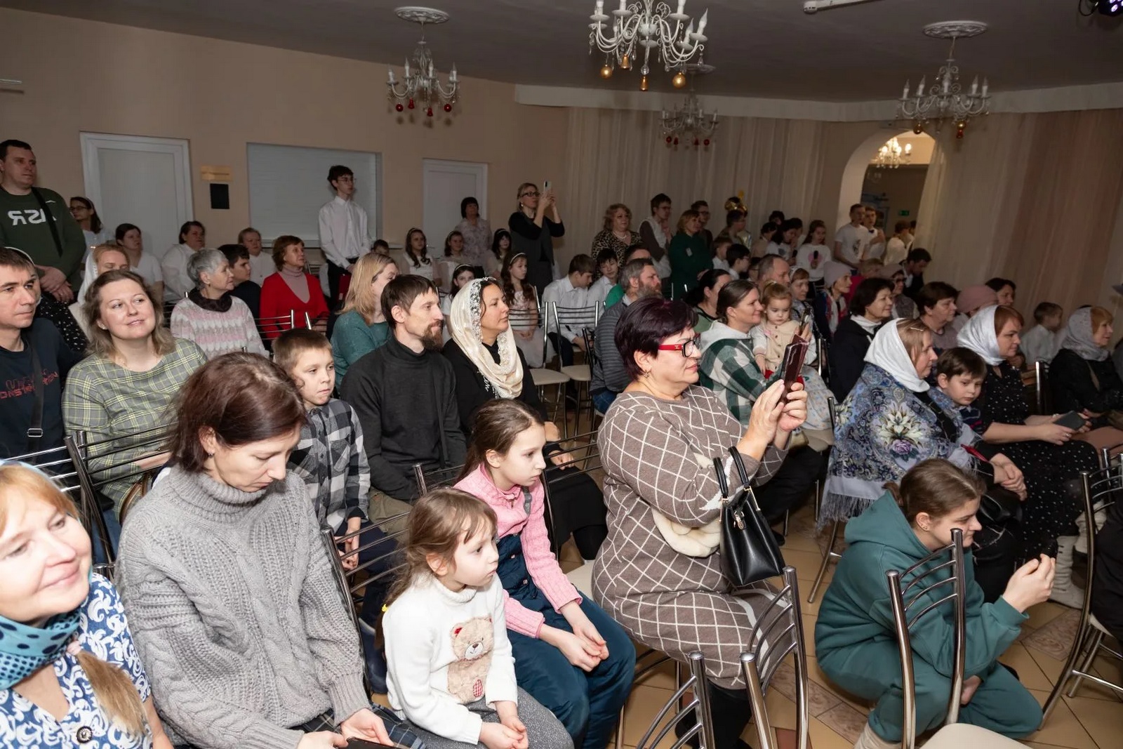 11.01.2026 Занятия в Воскресной школе - Праздничный концерт Сегодня на территории Троицкого храма г. Коломна (Щурово) состоялся большой рождественский концерт, собравший полный зал прихожан, родителей и гостей. Этот день стал настоящим торжеством детского творчества и радости. На сцене сменяли друг друга: воспитанники приюта при храме, учащиеся нашей воскресной школы, хор Православной классической гимназии святителя Филарета Московского. Ребята подготовили трогательные номера, прославляющие родившегося Богомладенца Христа, напоминая всем нам о чуде и надежде, которые приносит этот праздник. С приветственным и поздравительным словом к гостям обратился настоятель храма, благочинный 1-го Коломенского округа протоиерей Алексий Виноградов. Он поблагодарил участников за старание и пожелал всем мира, любви и крепкой веры. Завершился праздник на самой сладкой ноте — каждый юный артист получил из рук настоятеля рождественский подарок. Благодарим всех участников, педагогов и зрителей за этот чудесный вечер! Пусть свет Рождества пребывает с вами как можно дольше! С Рождеством Христовым! ◀ ▶ x