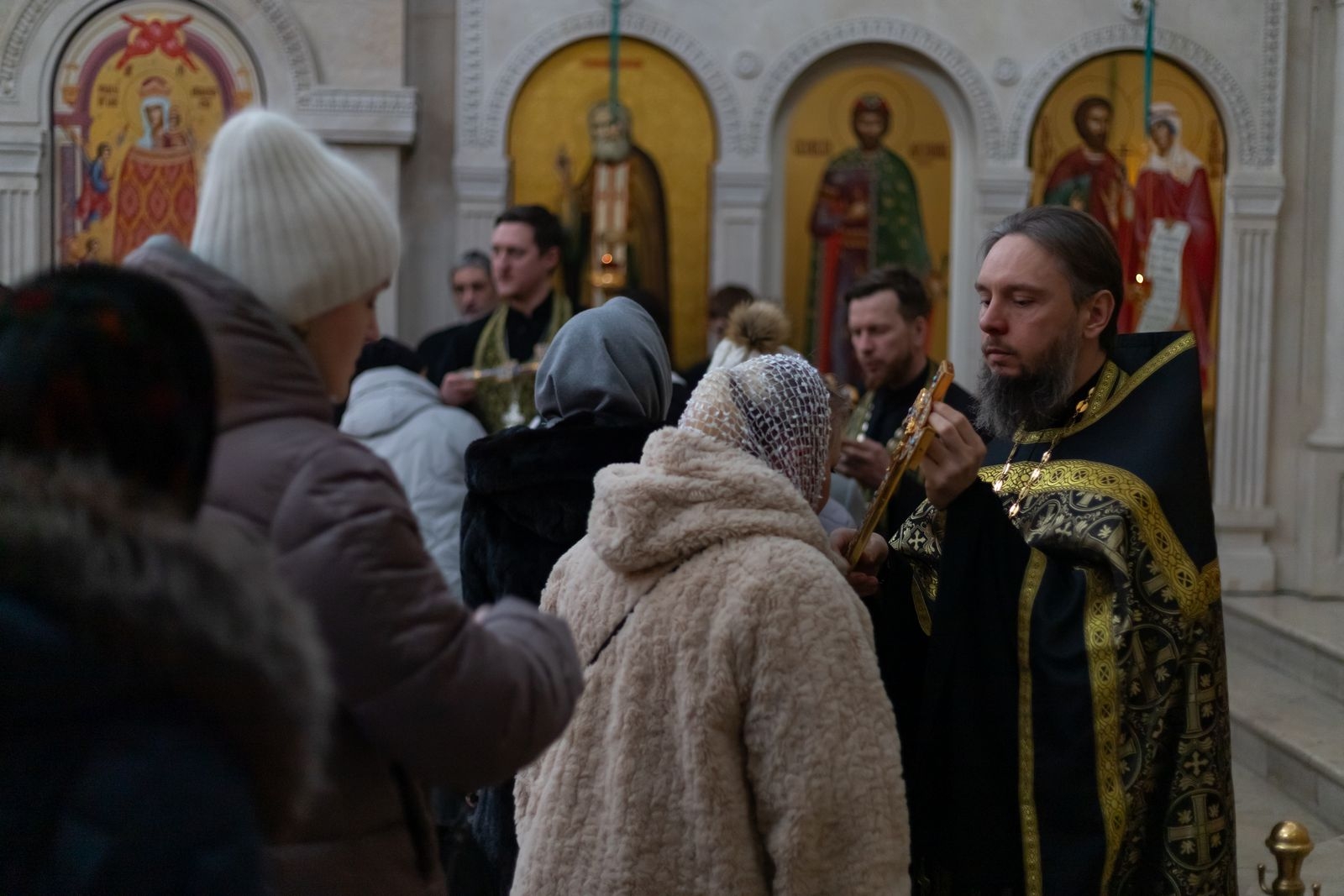 22.02.2026 Божественная литургия с чином прощения Все желающие пожать плоды от своего покаяния, услышьте Слово Божие, услышьте завет Божий: простите ближним согрешения их пред вами". Святитель Игнатий (Брянчанинов). Прощеное воскресенье – последний день перед Великим постом. В этот день все православные христиане просят друг у друга прощения, чтобы приступить к посту с доброй душой, сосредоточиться на духовной жизни, с чистым сердцем встретить Пасху - день Воскресения Христова. Вечером, в Неделю сыропустную (Прощеное воскресенье), в Троицком храме г. Коломна (Щурово) была совершена Великая вечерня с чином прощения. После входа с кадилом и пения Великого прокимна, духовенство переоблачилось в темные одежды, а песнопения стали исполняться великопостным чином. После отпуста вечерни настоятель храма протоиерей Алексий Виноградов прочитал молитвы на начало Великого поста и обратился к прихожанам со словом о прощении ближних. Затем был совершен чин прощения, после которого отец Алексий благословил верующих на прохождение Великого поста. ◀ ▶ x