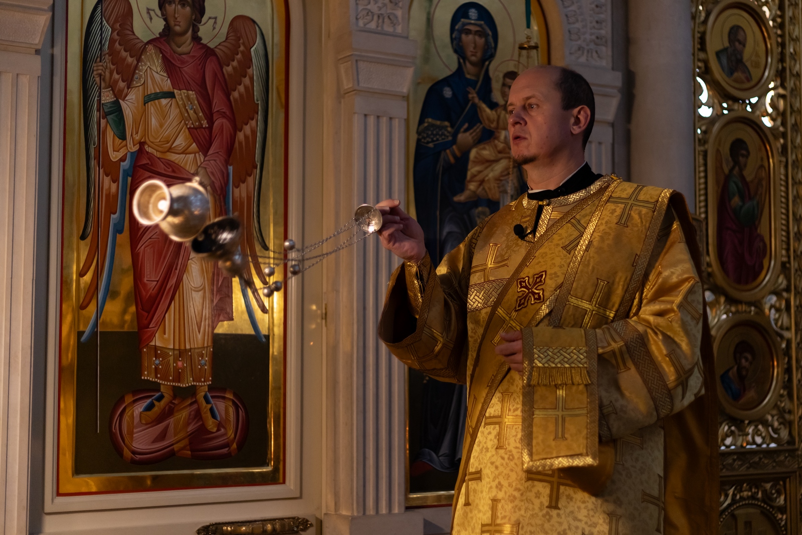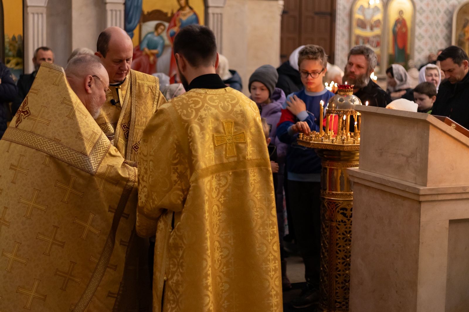 02.11.2025 Божественная Литургия в воскресенье, на неделе двадцать первой по Пятидесятнице 2 ноября, в Неделю 21-ю по Пятидесятнице, в Троицком храме г. Коломна (Щурово) было совершено воскресное Богослужение. Литургию возглавил настоятель храма протоиерей Алексий Виноградов в сослужении клириков храма: протоиерея Димитрия Киреева, иерея Николая Глухова и протодиакона Димитрия Соловьева. За богослужением молились прихожане, сотрудники Троицкого храма, воспитанники детского социального центра и подопечные социального центра «Надежда» при Троицком храме. Богослужебные песнопения исполнил клиросный хор Троицкого храма г. Коломна (Щурово) под управлением Софьи Андреевны Германовой. ◀ ▶ x