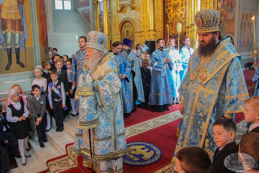 01.09.2017 День Знаний - 2017 Первого сентября 2017 года начало новому учебному году в Православной гимназии святителя Филарета Московского положил традиционный молебен в Троицком храме – ученики, их родители, учителя и духовенство молились о даровании сил и об успехах в учебе. После молебна состоялось праздничное мероприятие в здании гимназии. Со словами поздравления выступила Ирина Вячеславовна Макарова – директор гимназии, а так же духовник гимназии - настоятель Троицкого храма в Щурове протоиерей Владимир Пахачев. Особые поздравления – нашим первоклассникам. В их жизни будет еще немало школьных дней. Но именно этот – первый – запомнится больше всего! После единого классного часа и праздничной трапезы состоялась поездка в Успенский собор города Коломны, где общегородской молебен ко дню знаний возглавил митрополит Коломенский и Крутицкий Ювеналий. А чуть позже в Православной гимназии состоялось родительское собрание для родителей первоклассников. Перед руководством и преподавателями гимназии стоит сложная, комплексная задача: не только дать детям объем знаний, но и сформировать мировоззрение ребенка, воспитав христианина и способствуя проявлению в нем образа Божия. Наши ученики – разные. В Православной гимназии уже не первый год обучаются и дети из обычных семей нашего города, и дети из приюта при Троицком храме. Мы верим, что существует Промысл Божий о каждом ребенке. Каждый наш гимназист талантлив. Талантлив по-своему, и задача гимназии – раскрыть все грани способностей и талантов, причем сделать это без ущерба для ребенка. К сожалению, в наши дни мы видим безрадостную картину: многие школы все больше абстрагируются от нравственного воспитания детей, оставляя своими функциями лишь обучение и подготовку к экзаменам. Тем больше ответственность для нас, ведь сегодня как никогда важны слова духовного покровителя Православной гимназии – святителя Филаета: "Просвещение приносит благие плоды обществу только тогда, когда основанием ему служит вера". Так же настоятель Троицкого храма протоиерей Владимир Пахачев посетил торжественные акты по случаю Дня Знаний, прошедшие в Коломенском Политехническом колледже и в Государственном Социально-Гуманитарном Университете Коломны, поздравив студентов с началом учебного года. Поздравляем с началом учебного года! ◀ ▶ x