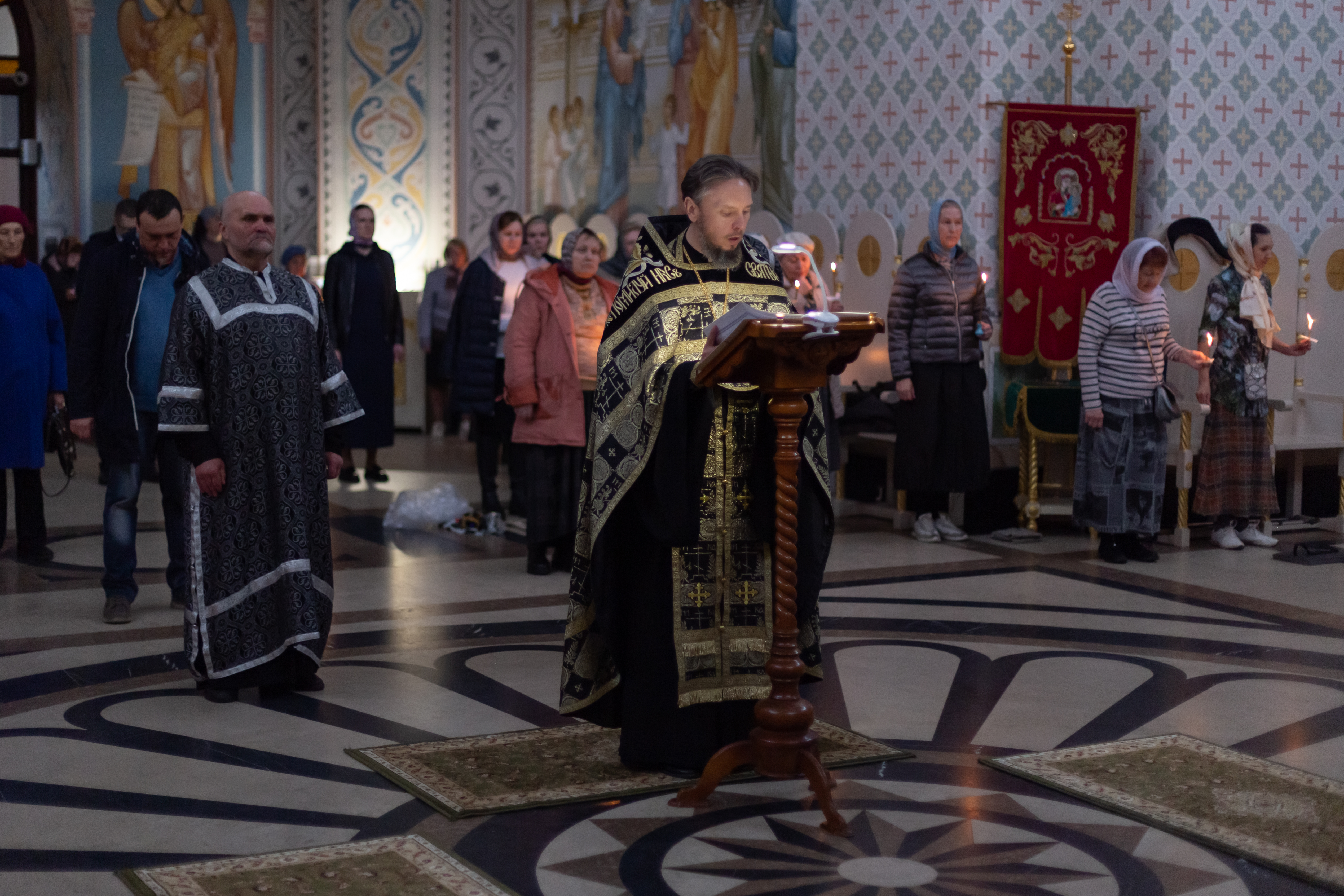 17.04.2024 Мариино стояние В среду 17 апреля в Троицком храме г. Коломна (Щурово) была совершена утреня с чтением Великого канона преподобного Андрея Критского и жития преподобной Марии Египетской. В первые четыре дня Четыредесятницы на Великом повечерии читается Великий покаянный канон преподобного Андрея Критского. Целиком он поется на утрене четверга пятой седмицы, которая обычно совершается в среду вечером, накануне. Великий покаянный канон состоит из 250 строф и призывает душу к покаянию. Эта одно из самых длинных и сложных богослужений носит иное название «Стояние Марии Египетской». В храме в этот день верующие слышат житие святой Марии Египетской. Этот текст, по мысли святых отцов VI Вселенского собора (692 год), а именно тогда была составлена служба из Великого покаянного канона преподобного Андрея Критского и жития Марии Египетской, способен дать надежду и тем, кто думает, что находится в отчаянном положении и тем, кто не верит, что способен достойно завершить пост и встретить Воскресение Христово. Мариино стояние — богослужение, которое утешает страждущих и вместе с тем побуждает верующих продолжать подвиг поста и покаяния. ◀ ▶ x
