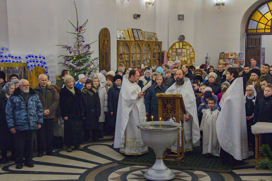18.01.2018 Навечерие Богоявления (Крещенский сочельник) 18 января, в Крещенский Сочельник, богослужение в Троицком храме началось Царскими часами. По прочтении Царских часов была отслужена Великая Вечерня в соединении с литургией Василия Великого, и состоялось Великое освящение воды. Чин Великого освящения воды служится лишь два раза в год – 18 и 19 января по новому стилю: соответственно, в Крещенский Сочельник и в сам день Святого Богоявления. Даже у людей воцерковленных возникает вопрос, отличается ли вода, освященная в Сочельник от воды, освященной в праздник Богоявления? Отличия никакого нет, поскольку идентичен сам чин Великого освящения, и благодать подается одна и та же. Водоосвящение в самый праздник получило свое начало в Иерусалимской Церкви и в IV—V вв. совершалось лишь в ней одной, где был обычай выходить на реку Иордан для водосвятия. Поэтому и в Русской Православной Церкви освящение вод в Навечерие совершается в храмах, а в сам праздник оно обычно совершается на реках, источниках и озерах («Хождение на Иордань»), ведь Христос крестился вне храма. И сегодня, и завтра любой желающий может посетить храм, присутствовать на богослужении и набрать Святую воду. Традиционно, в эти дни сотрудники Троицкого храма читают в храме избранные акафисты. К сотрудникам присоединяются и инвалиды: подопечные социального центра "Надежда" при Троицком храме. В Навечерие праздника Богоявления настоятель Троицкого храма протоиерей Владимир Пахачев и клирики храма посетили коломенские школы №28, №29 и №30; противотуберкулезный диспансер Коломны, поликлинику и отделения Щуровской айонной больницы, где поздравили сотрудников и детей с грядущим праздником Крещения Господня, окропили помещения святой водой и пригласили в Троицкий храм. Также состоялся визит в школу-интернат №19 Коломны, где юным воспитанникам интерната были розданы сладкие подарки. ◀ ▶ x