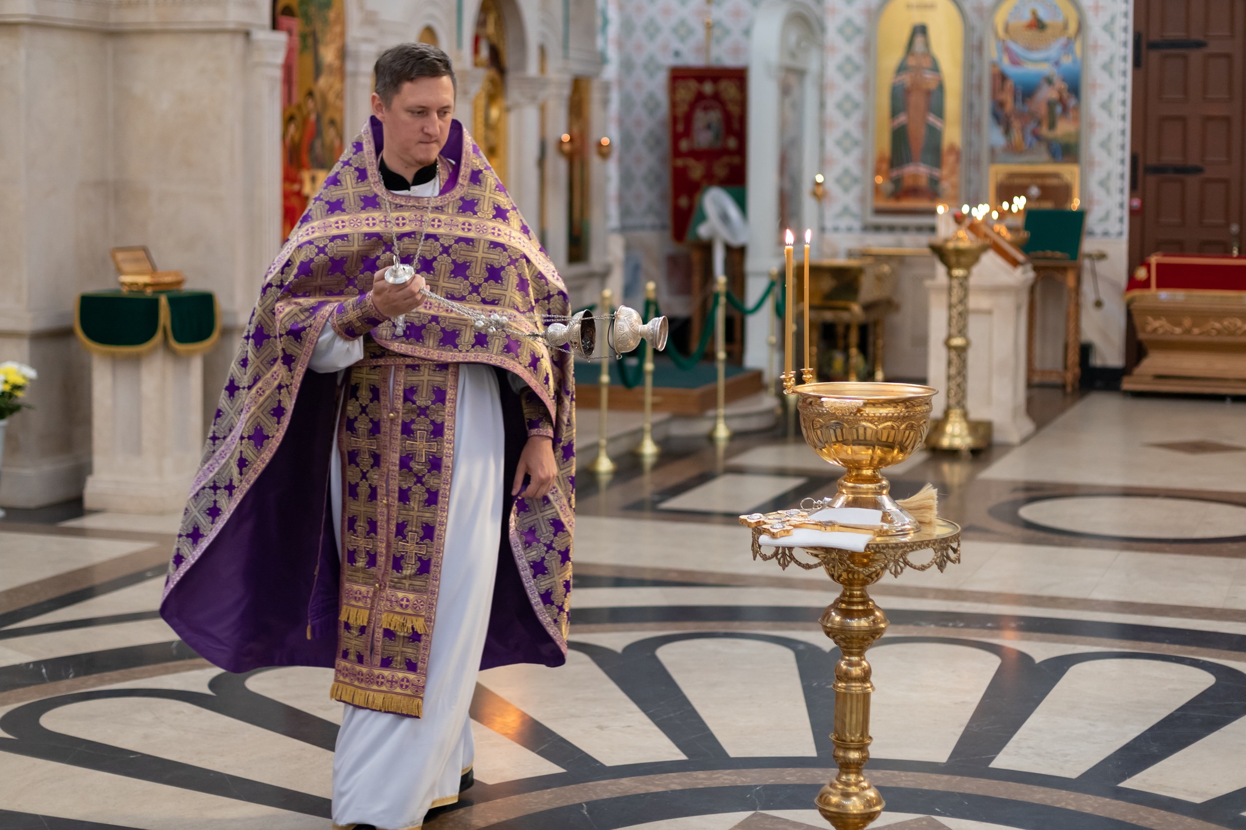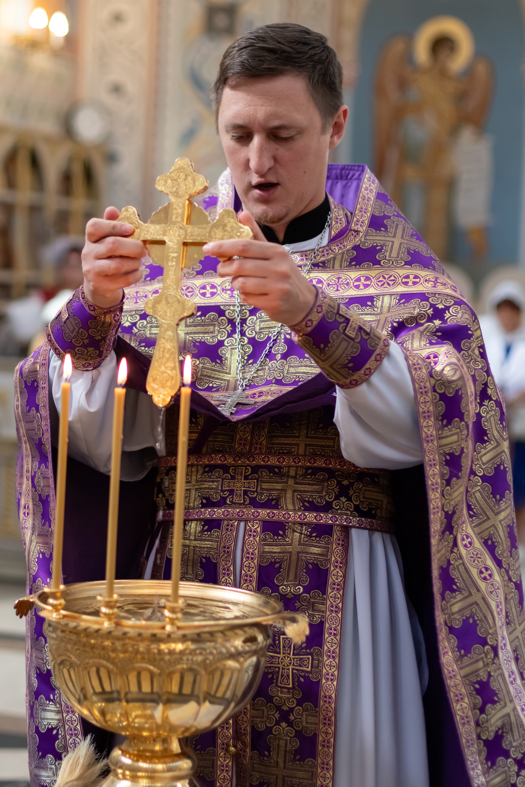 14.08.2025 Происхождение Честных Древ Животворящего Креста Господня 14 августа празднуется Происхождение Креста Господня, а также вспоминается мученический подвиг святых семи братьев Маккавеев, пострадавших вместе со своею матерью Соломониею и учителем Елиазаром. В этот день по уставу Церкви полагается чин малого освящения воды, поэтому до начала Божественной литургии был совершен водосвятный молебен, а затем настоятель храма возглавил Литургию в сослужении клириков: протоиерея Димитрия Киреева и иерея Николая Глухова. Накануне, на вечернем богослужении, на середину храма выносится Животворящий Крест Господень, для поклонения верующим. С этого дня начинается Успенский пост, верующие освящают плоды нового медового сбора. 14 августа также вспоминается великое христианское событие - крещение Руси, которое состоялось при князе Владимире Великом. Начало просвещения нашего Отечества совпало с праздником Происхождения Креста Господня. Изначально этот праздник был установлен по инициативе Константинополя, чтобы предотвратить всплеск различных заболеваний, который приходился тогда на август. Священники выносили из царской сокровищницы часть Животворящего Древа Господня, на котором был распят Христос Спаситель, и обносили его по всему городу в течение Успенского поста, совершая на улицах молебны. ◀ ▶ x