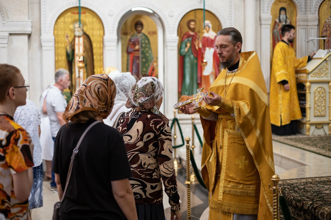 30.06.2024 Воскресное богослужение на неделе 1-й по Пятидесятнице, Всех святых 30 июня, в воскресенье, на неделе 1-й по Пятидесятнице, Всех святых, в Троицком храме г. Коломна (Щурово) была совершена Божественная литургия. Богослужение возглавил настоятель храма протоиерей Алексий Виноградов в сослужении клириков. За богослужением молились прихожане, сотрудники Троицкого храма, воспитанники детского социального центра при Троицком храме. Богослужебные песнопения исполнил клиросный хор Троицкого храма г. Коломна (Щурово) под управлением Софьи Андреевны Германовой. ◀ ▶ x