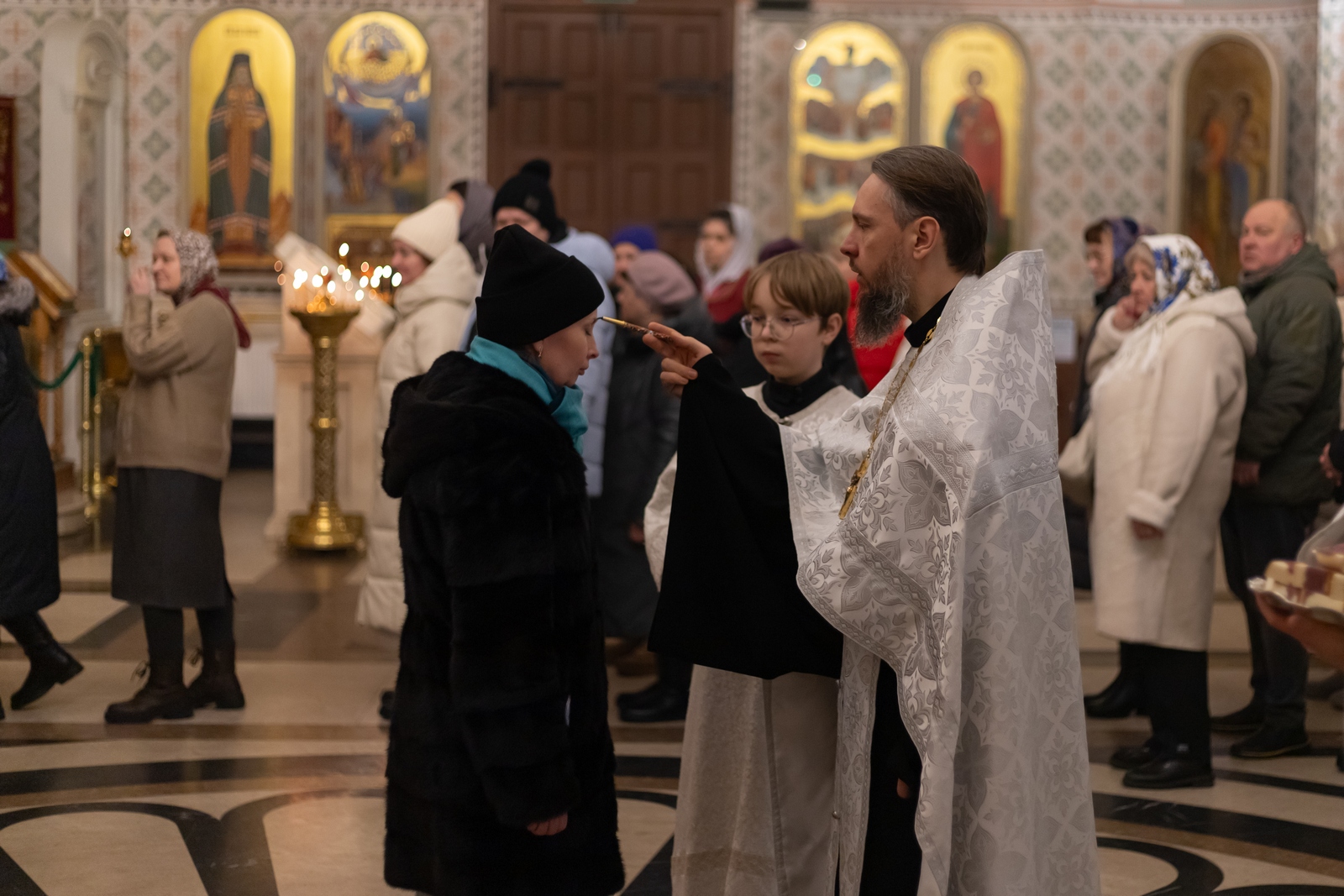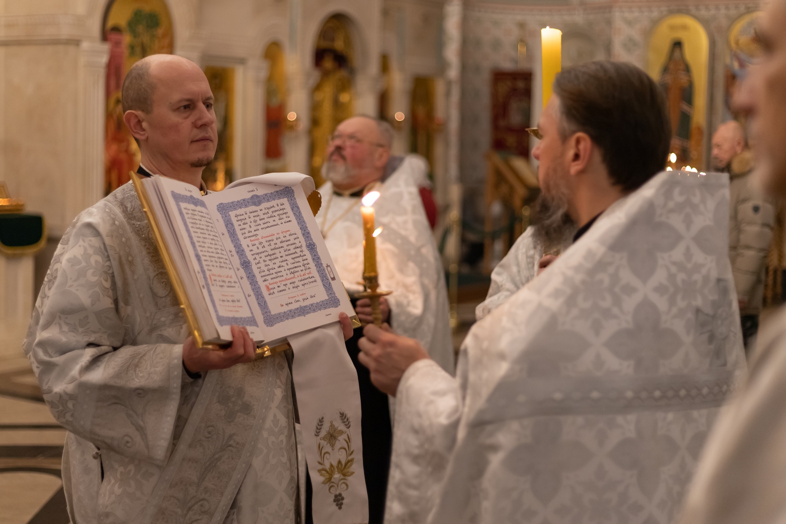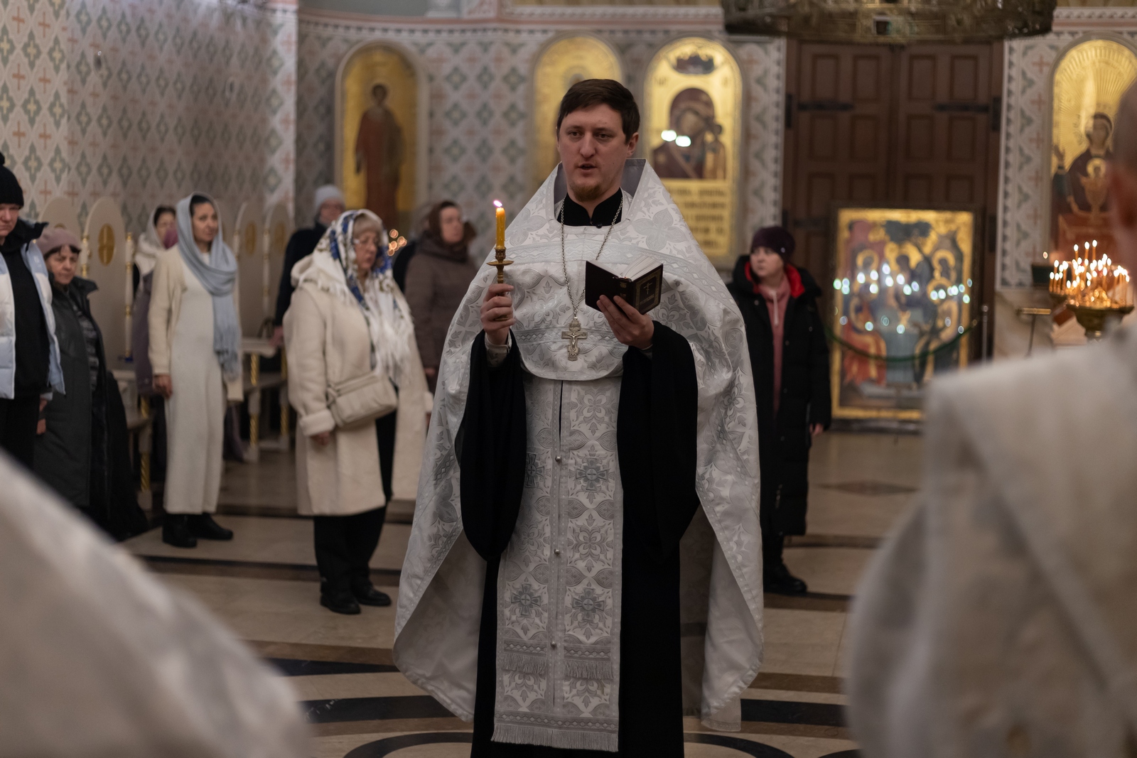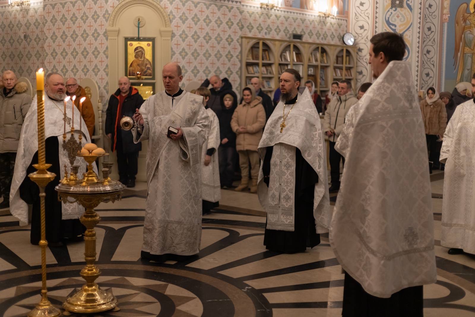 18.01.2026 Всенощное бдение в канун праздника Крещения Господня 18 января, в канун праздника Крещения Господа Бога и Спаса нашего Иисуса Христа, в Троицком храме г. Коломна (Щурово) было совершено всенощное бдение, которое возглавил настоятель храма протоиерей Алексий Виноградов в сослужении клириков: протоиерея Димитрия Киреева, иерея Николая Глухова и протодиакона Димитрия Соловьева. Всенощное бдение праздника Крещения состоит из великого повечерия, литии, утрени и первого часа. За богослужением молились прихожане и сотрудники Троицкого храма. Богослужебные песнопения исполнил клиросный хор Троицкого храма г. Коломна (Щурово) под управлением Софьи Андреевны Германовой. ◀ ▶ x