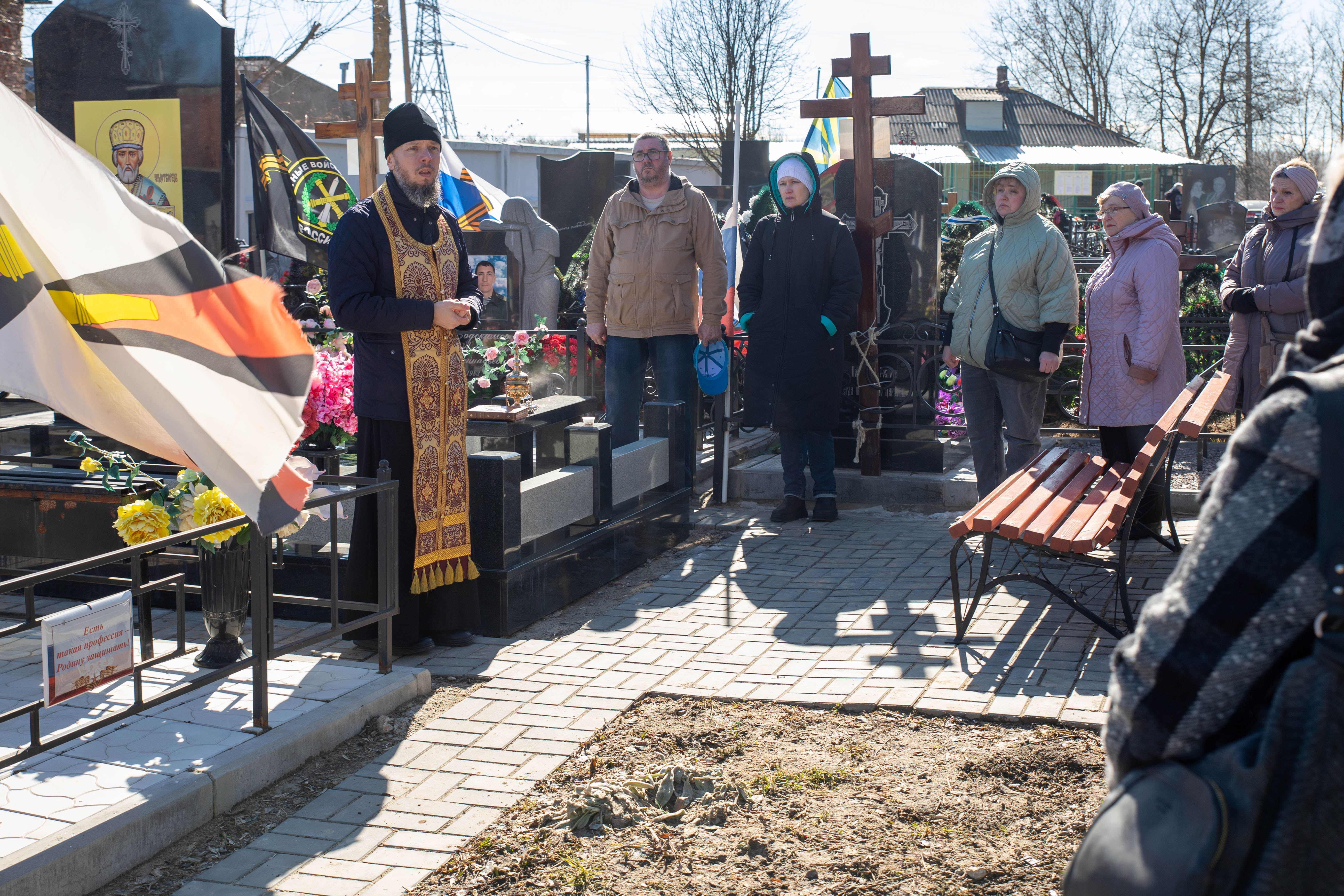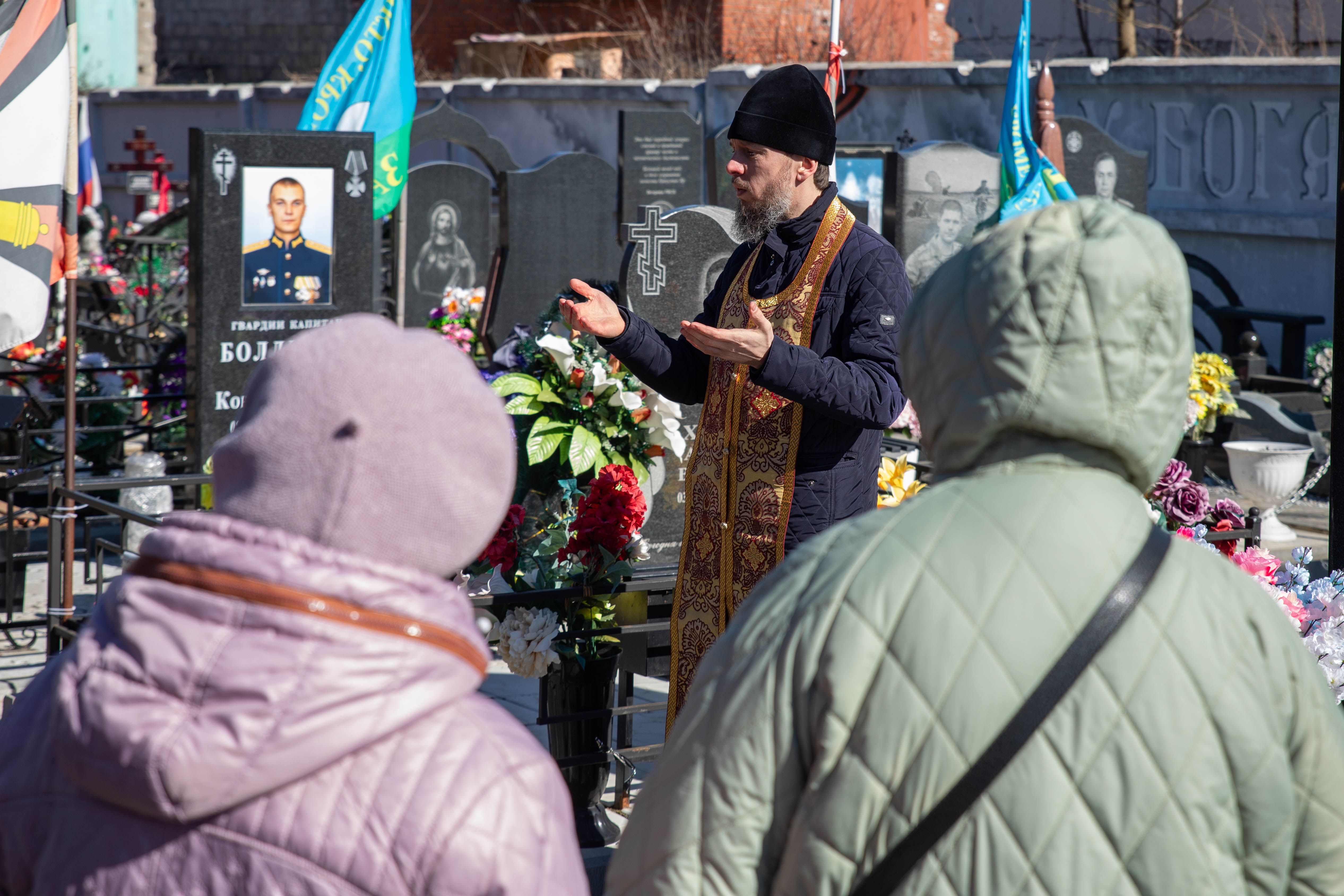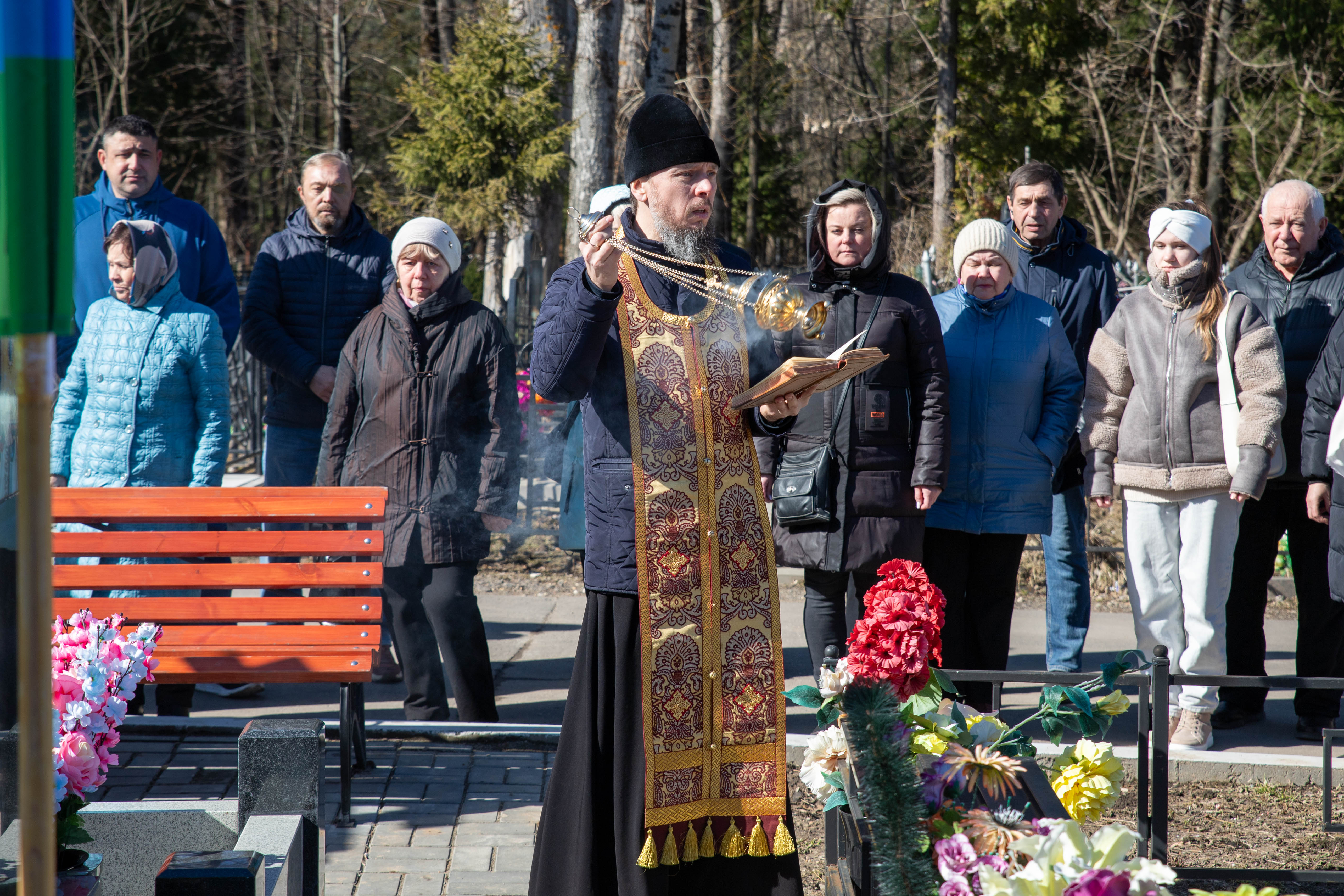 22.03.2025 Заупокойная панихида по воинам, погибшим при выполнении задач специальной военной операции 22 марта 2024 года настоятель Троицкого храма г. Коломна (Щурово) протоиерей Алексий Виноградов совершил заупокойную панихиду на Старом кладбище г. Коломна по воинам, погибшим при выполнении задач специальной военной операции. Почтить память погибших российских солдат пришли их родственники и семьи. По завершении панихиды протоиерей Алексий Виноградов сказал слово, в котором отметил величие подвига воинов жизнь свою за веру и Отечество положивших. Затем состоялось возложение цветов к могилам воинов. ◀ ▶ x