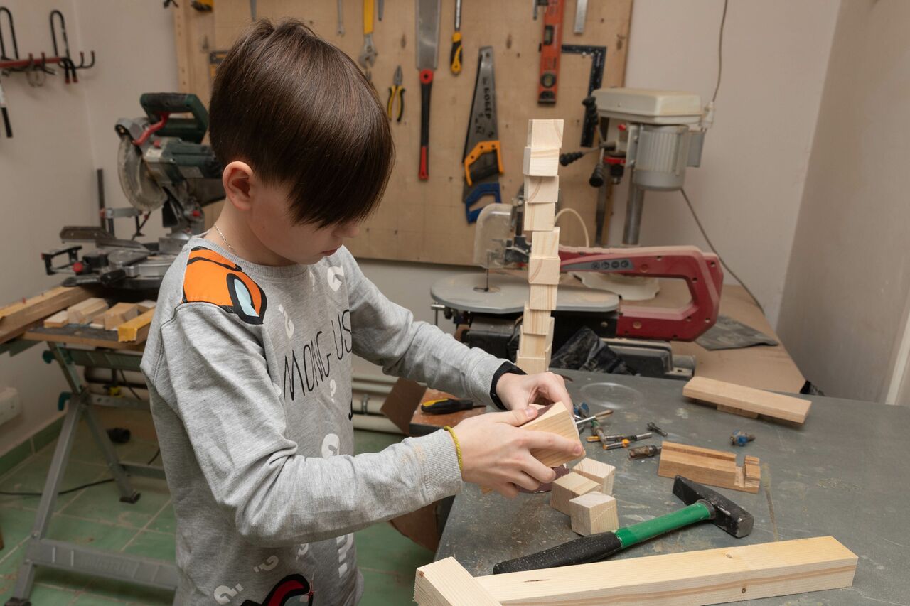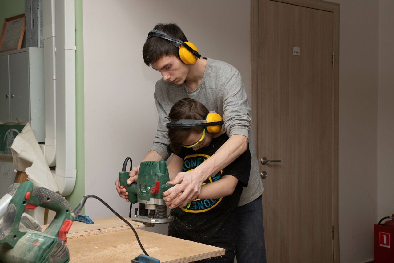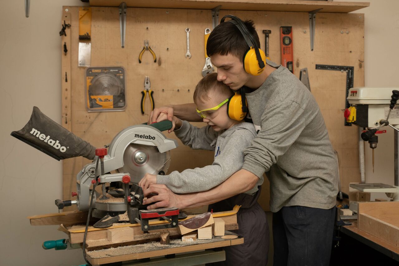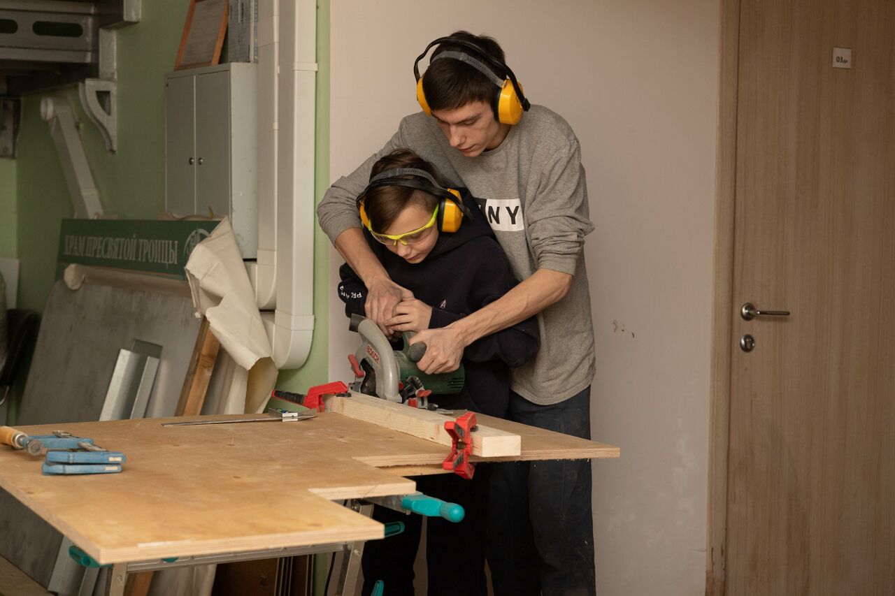 Для ребят старшего возраста силами сотрудников прихода и благотворителей была оборудована небольшая столярная мастерская. В свободное время ребята проходят обучение навыкам работы с деревом. Упор делается на умение работать как ручным, так и электроинструментом – разумеется, с соблюдением требований техники безопасности.